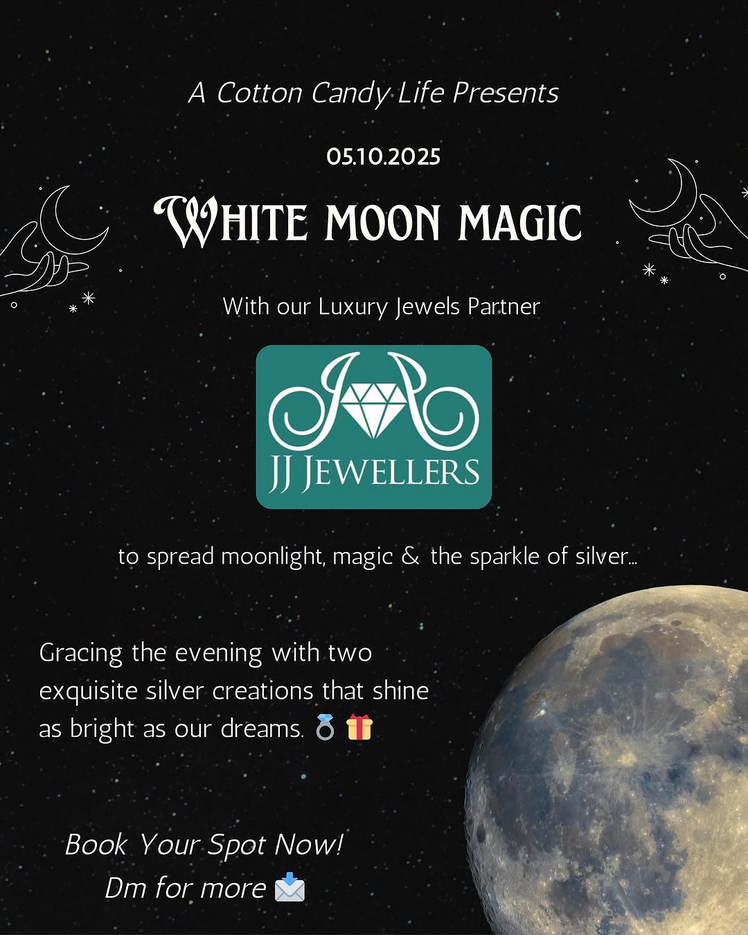 Our Luxury Jewels Partner — JJ Jewelers 💎 Moonlight, magic & the sparkle of silver… JJ Jewelers are gracing the evening with two exquisite silver creations that shine as bright as our dreams. 🤍 TWO OF OUR LUCKY WINNERS WILL GET THIS BEAUTIFUL RING EACH! . . . #a_cotton_candy_life