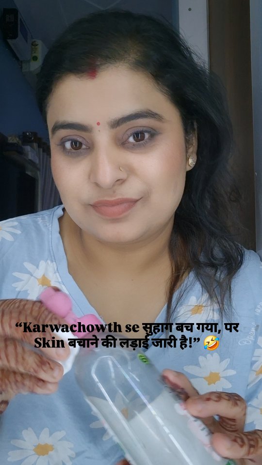 “रात को मेकअप उतारते वक्त समझ आया… करवाचौथ का व्रत तो आसान था! 💄😂” Hashtags: #KarwaChauth #MakeupStruggles #AfterFastMood #KarwaChauthVibes #FunnyReel #RelatableHumor #MarriedLife #DesiWife #karwachauth2025❤️🧿