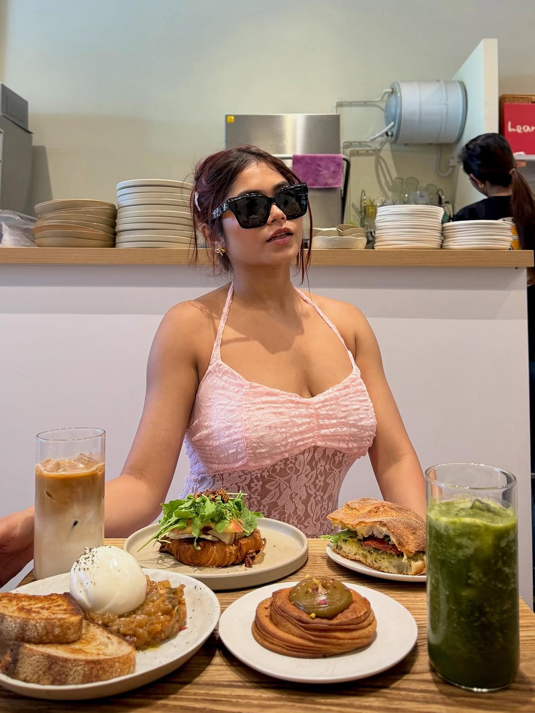 Sunday brunch at Lean & Rich Café never disappoints 🌿☕️ From the Vanilla Bean Latte and fresh apple juice to the caponata with burrata, apple & brie, focaccia italiana, and a touch of pistachio indulgence — every bite feels like a little luxury 🥖🧀✨ 📍@leanrichbakery ❤️ Outfit: @savanaonyou @savana Sunglass: @jimmychoo #hosted
