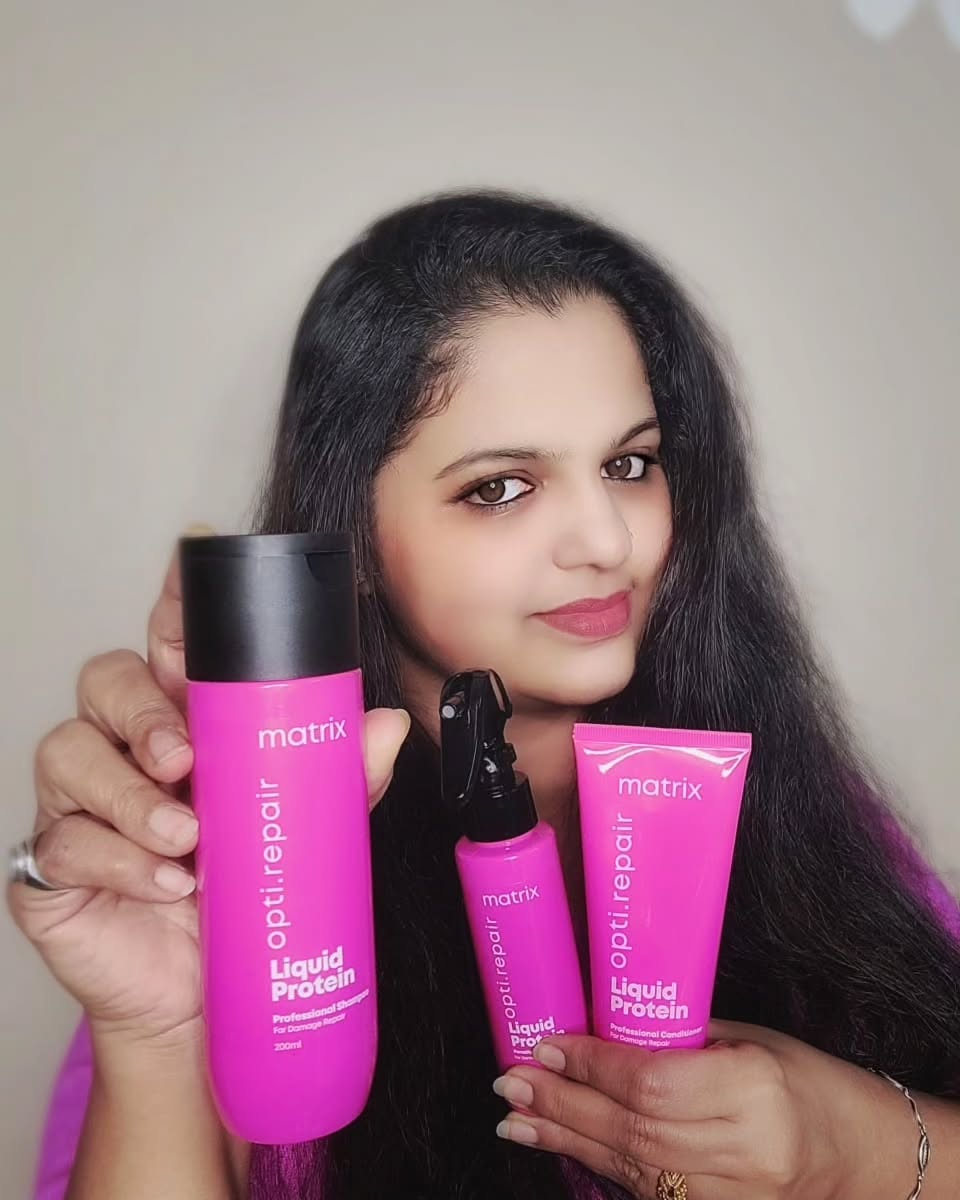 Unlocking the Secret to Damage-Free Hair 🌟 with Matrix Opti Repair's Liquid Protein System! Gone are the days of dry, brittle locks. Here's how I revived my hair: 1️⃣ Cleanse with Matrix Liquid Protein Shampoo 2️⃣ Nourish using Matrix Liquid Protein Conditioner 3️⃣ Protect with Matrix Reduced split ends, no more breakage, and my hair feels healthier than ever. . Ready to rescue your hair too? And get damaged free hair then, Get your hands on Matrix Opti-Repair. Available at salons and online. Your hair deserves it! 🌸 #ad #byebyedamage #matrix #optirepair #haircare #haircareroutine #haircareproducts #pinkchallenge #matrixporosityspray #liquidproteinsystem @matrixindia_lnc #matrixindia
