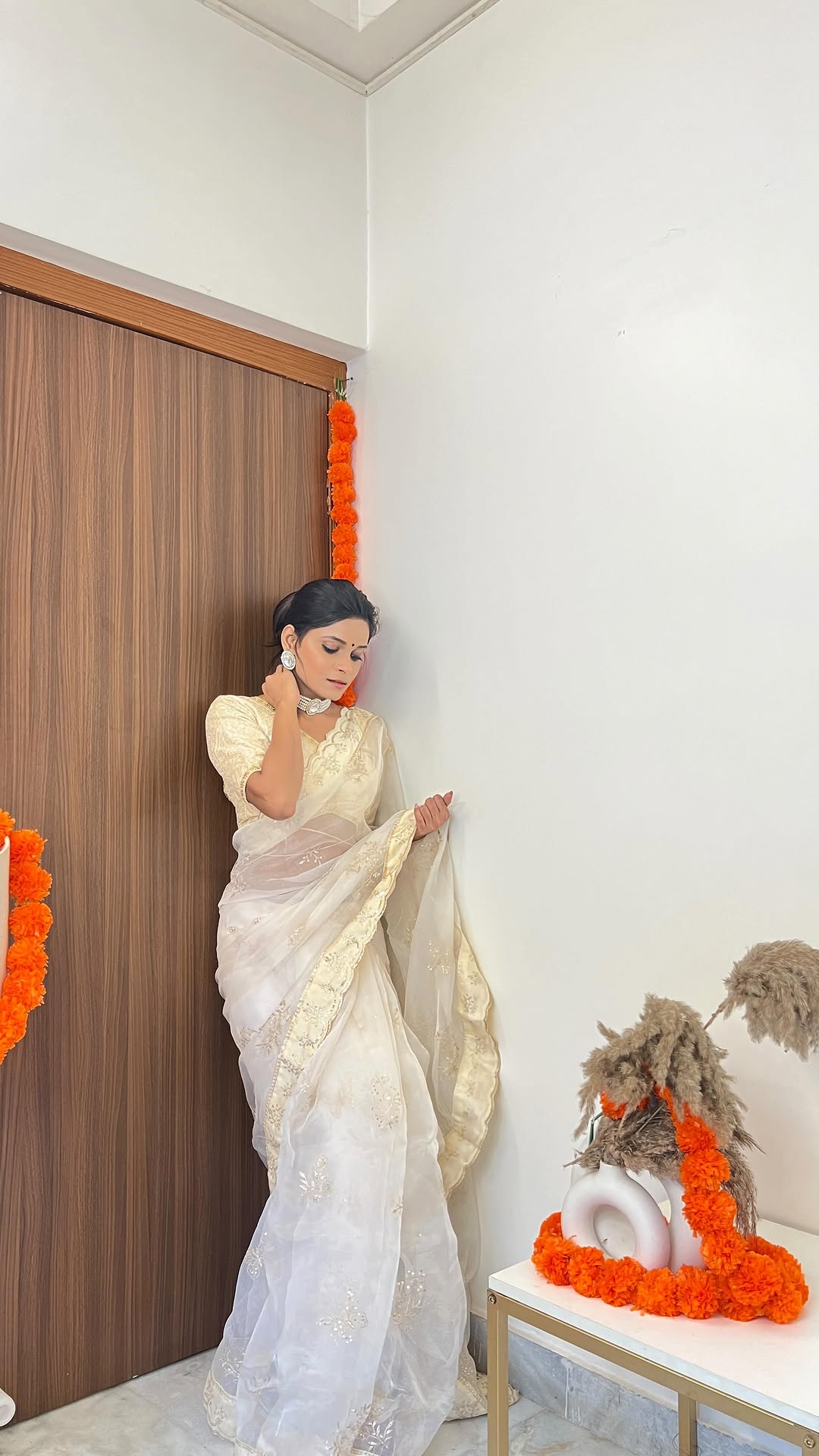 Day 5 #9daysofsaree #9daysofnavratri 💫 . . Navratri Day 5: White 🤍 . . Follow for more 🎀💝 . . #celebrityrecreation #aliabhatt #navratri #sareelooks #relatable #relatablegram #reels #reelsinstagram #thatagarwalgirl