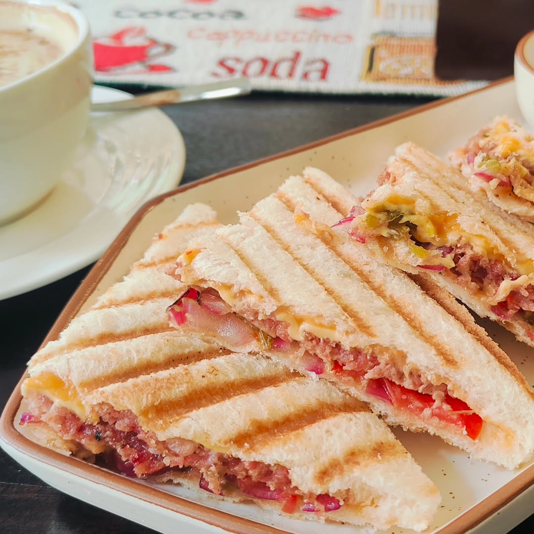 Happiness is a good cup of coffee and pork salami sandwiches. @cupebong .