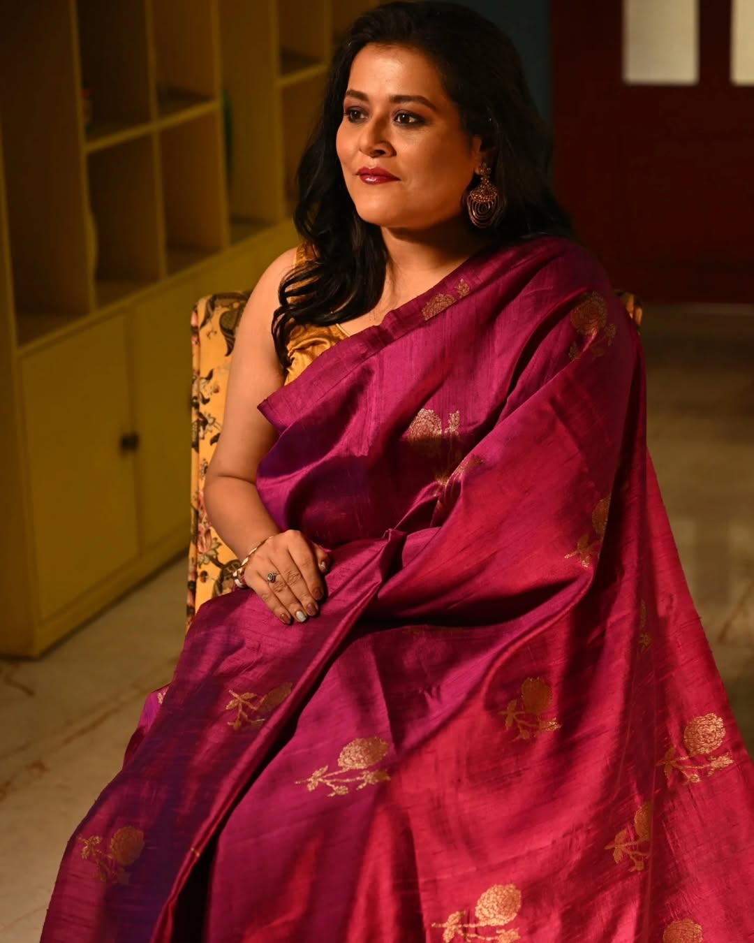 GULAB - Elegant and graceful — this Tussar Benarasi is where earthy elegance meets royal craftsmanship. The raw texture of Tussar silk carries a natural sheen, while matt gold Benarasi zari motifs bring opulence to life. Handwoven florals with intricate rose depictions, inspired by Varanasi’s weaving traditions, make this drape a timeless statement of heritage and grandeur. On Panchami, when anticipation brews and the city readies itself for the days ahead, Gulab becomes your perfect beginning. Its rustic charm and regal aura set the tone for the festivities — whether you’re stepping out for the first round of pandal visits or soaking in the buzz of the season. A saree that whispers tradition and welcomes Puja with quiet grace. [Durga Puja sarees online, Festive sarees for Durga Puja, Buy Benarasi saree for Puja, Tussar silk sarees online shopping, Traditional sarees for Durga Puja 2025, Handwoven sarees for Puja festival, Best sarees to wear for Durga Puja, Exclusive Durga Puja saree collection, Designer sarees for Durga Puja, Aalta sarees festive collection]