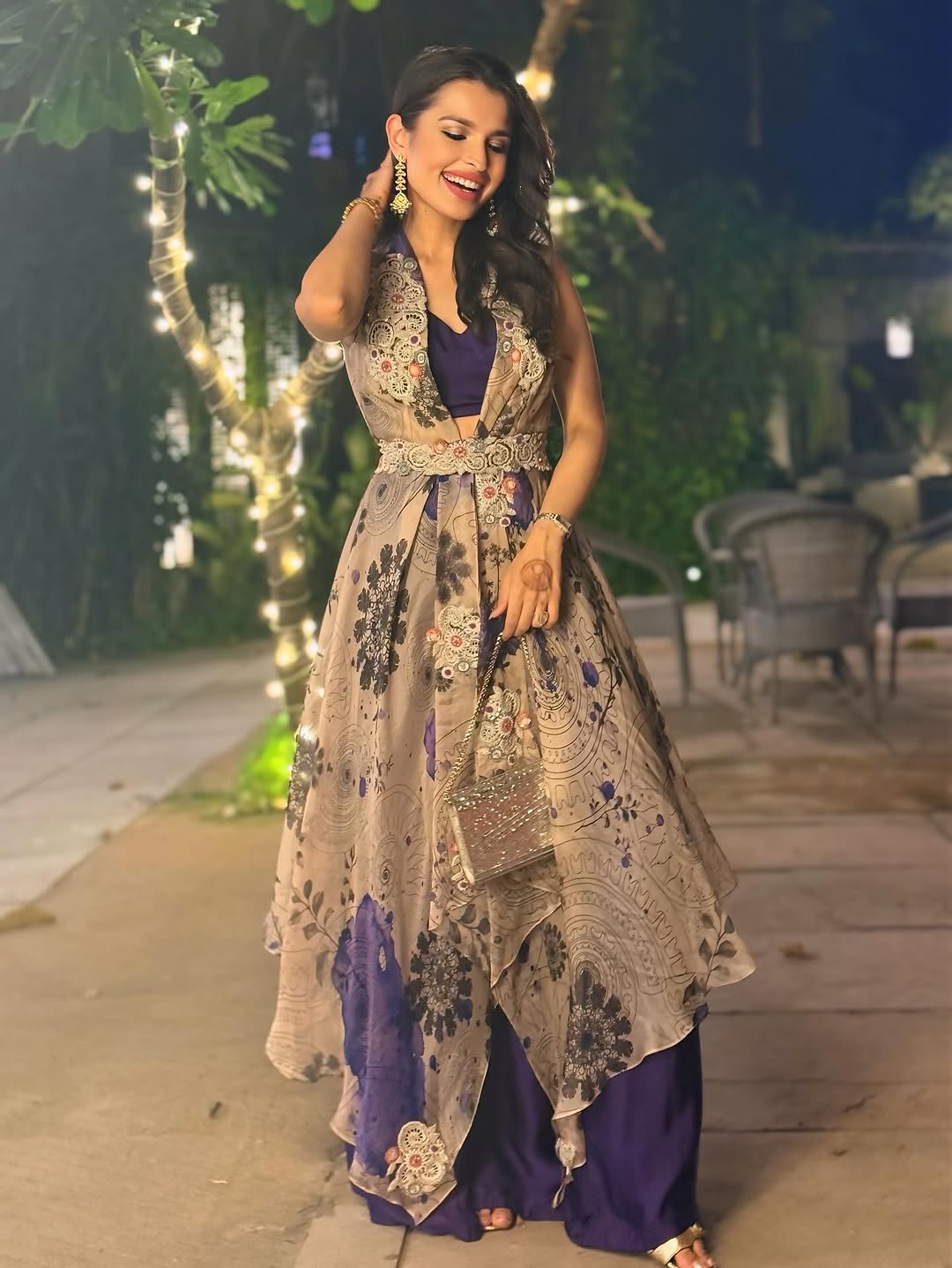 Diwali Look [1/4] ✨ Kicking off the festive season in this elegant outfit by @nehhanhataofficial 💜 Loving the soft flow, rich hues, and that touch of sparkle, perfect for a night full of light and laughter! 🪔💫 #DiwaliVibes #FestiveGlow #StyleDiaries #IndianFashion #DiwaliLook #FestiveSeason #OOTD