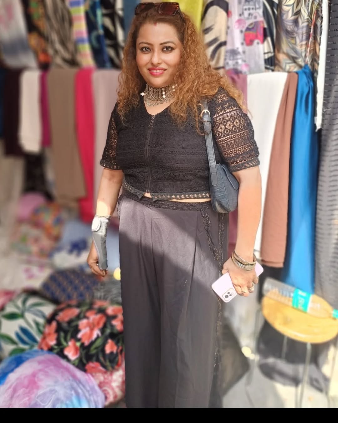 **"Sunshine flirting with raindrops while I weave through vibrant fabrics—shopping with nature’s mood swings! 🌦️✨ #StreetShopping #MarketMagic"** The smell of rain on warm pavement, hands brushing through colorful fabrics—just like the old days. 🌧️☀️ #familiarfeels #summer #sakshicious #akfotography_ak #akfotography #shopping #shoplocal Ootd details Bottom: @antheaaclothing Top: @anitadongre Watch: @rado Hand accessory : THUMB SPLINT 😉😜 BY @tynorofficial Hair color chk by @rahulhaircreator Handbag : @hidesignhq