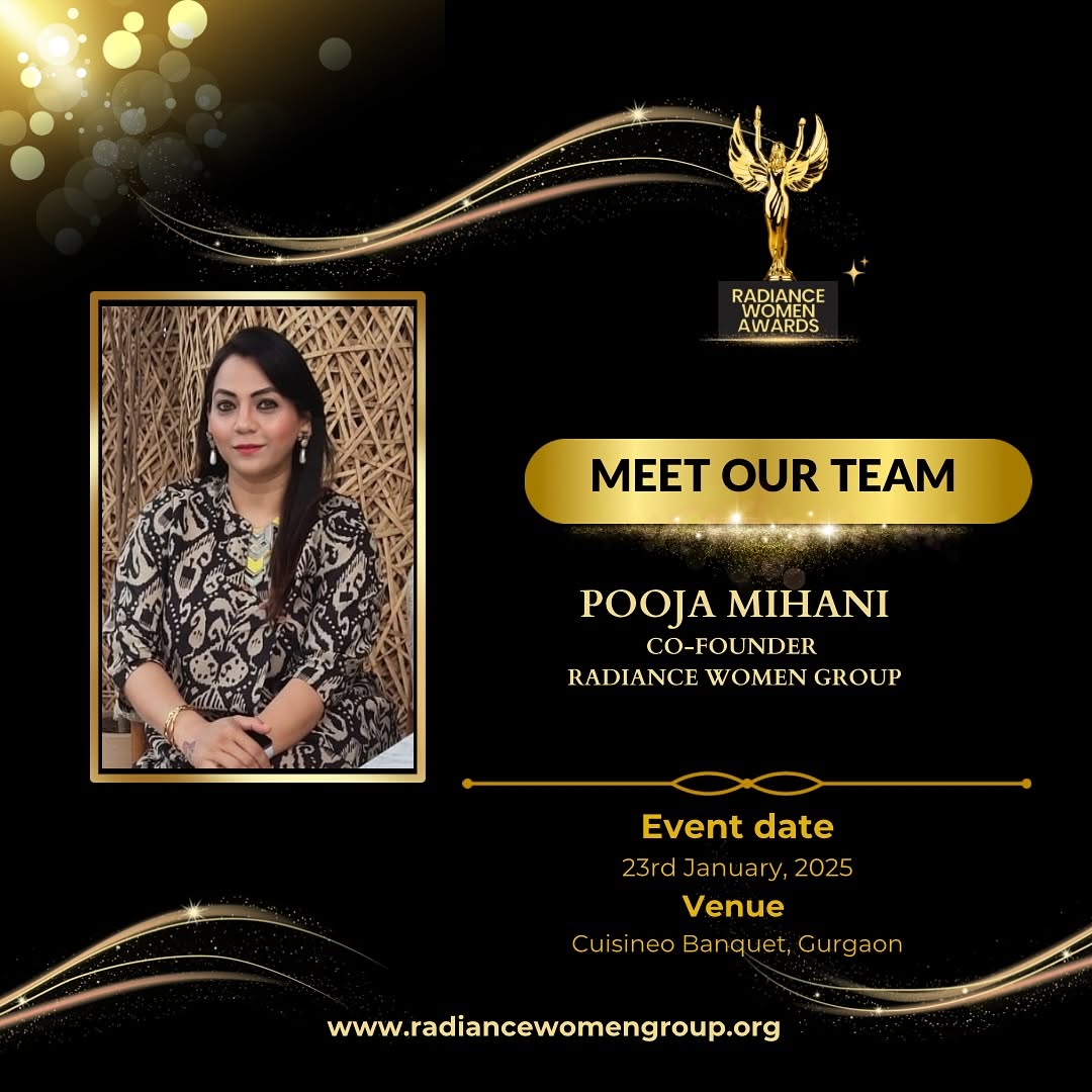 Introducing Pooja Mihani: A Trailblazer in Empowerment and Elegance Meet Pooja Mihani, the co-founder of the prestigious Radiance Women Awards and a dynamic force in the world of entrepreneurship and social impact. A commerce graduate from Mumbai University, with a specialization in event management from NMIMS, Pooja brings over a decade of expertise honed at global giants like J.P. Morgan, Citibank, and Encore Capital Group. Beyond her corporate accomplishments, Pooja is a celebrated entrepreneur and the visionary behind House of Bee. As an Instagram-certified lifestyle influencer, she has been curating luxury and lifestyle events for over five years, earning accolades and recognition for her unparalleled creativity and finesse. Her journey extends beyond business, as she passionately advocates for social causes, focusing on uplifting women and children while championing mental health awareness. With her unwavering dedication and numerous awards to her name, Pooja Mihani embodies the perfect blend of professionalism, compassion, and inspiration. #radiancewomenawards2025 #radiancewomenawards #radiancewomen
