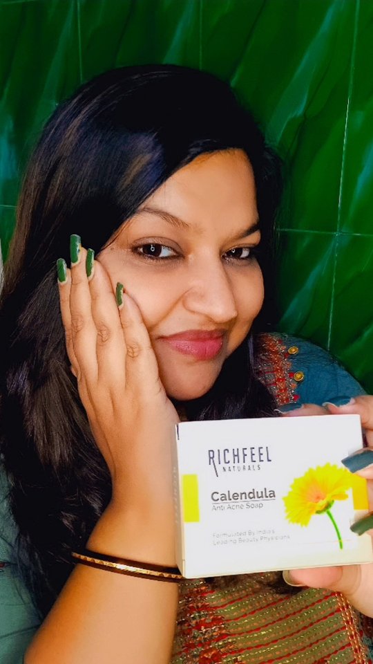 Tried it as a joke… now my mirror flirts with me. RICHFEEL’s Calendula Soap is low-key the hero my skin was manifesting. Results so real, they feel illegal. 🧼✨ [Richfeel Naturals, Calendula Soap, Anti Acne, Prevents Acne, Controls Oiliness, Acne Reduction, Gentle Cleansing, Face Brightening, Lighten Complexion, Reduce Pigmentation, Healthy Glow] #kolkatablogger #Richfeel #lifestyle