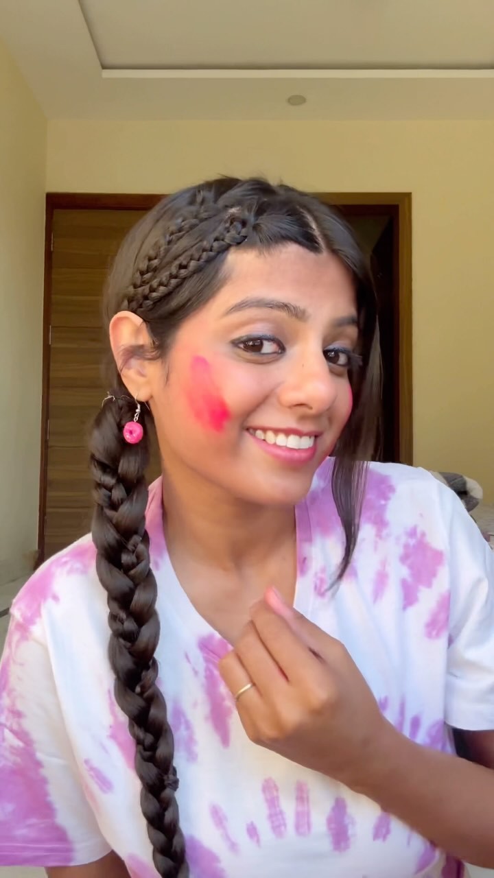 Holi hairstyle to try 🎀 Braids are a win-win—cute, protective & perfect for oily hair too! 😉🌸 Stay stylish while keeping your hair safe from all the colors! . #HoliReady #HoliHai #EasyHairstyle #FestiveHair #BraidedBeauty