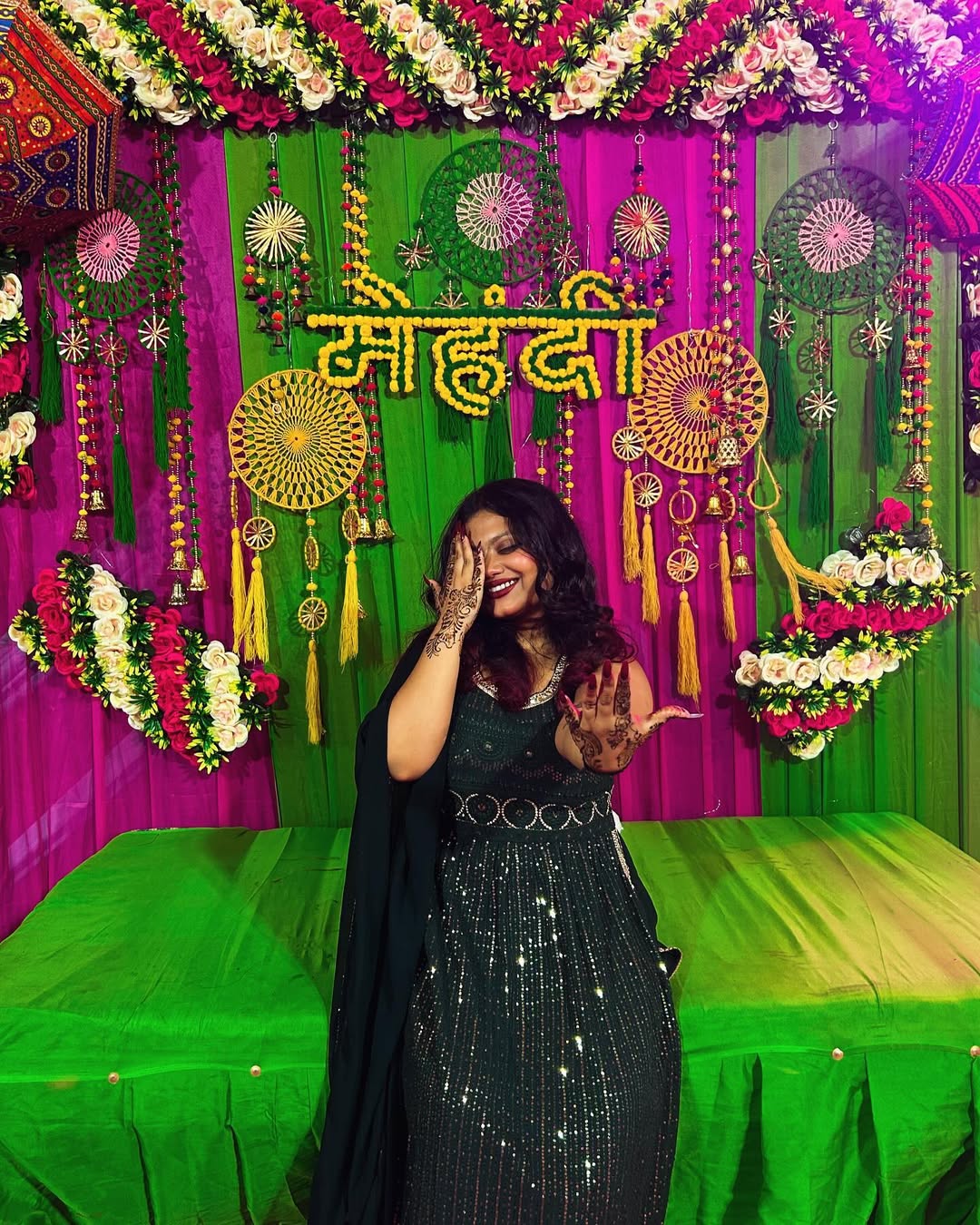 DAY2 • MEHENDI RACH GAYI 💚🧚🏻 . . . #mehendi #mehendidesign #sangeetnight #green #photooftheday #springfashion #blue #minimalism #instalove #exploreeverything #black #minimalism #beach #interior #woodenart #bhyp #photography #followforfollowback #weddingdecor #diyprojects