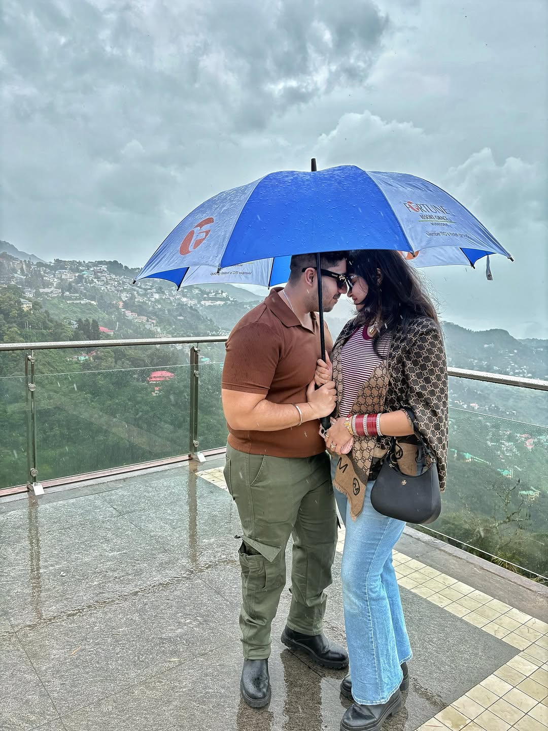 Wrapped in love and rain surrounded by mountains 🏔️☔❤️ #UnderTheSameUmbrella #CoupleTime #RainyDayVibes #LoveInTheRain #MonsoonMood #AdventureTogether #BestDaysEver #ForeverAndAlways #InThisMoment #CoupleGoals”