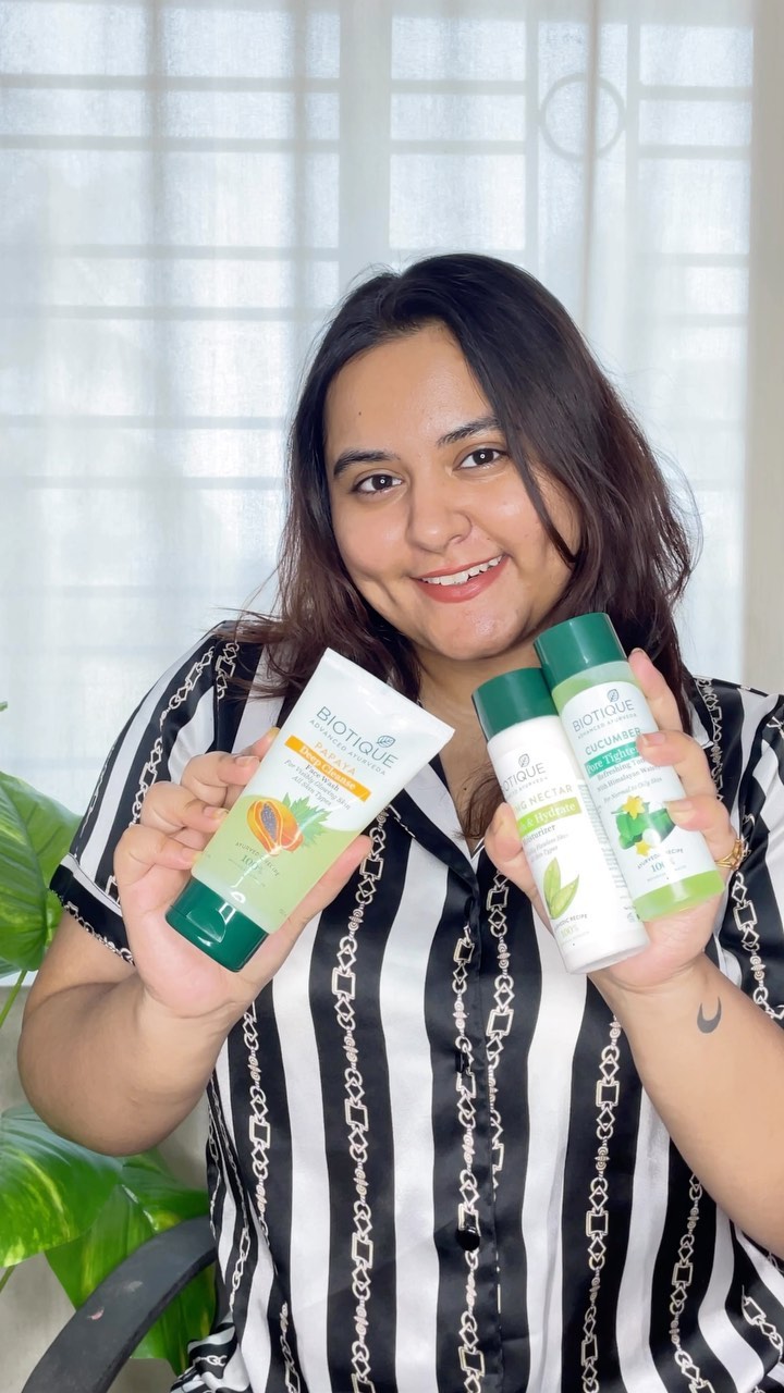 My CTM ROUTINE just these @biotique_world products 💜 Now my skin does not feel dry and dull now I can see the natural glow on my skin. Product details Biotique papaya cleanser Biotique cucumber toner Biotique morning nectar moisturizer #Ad #biotique #advancedayurveda #realisreallybeautiful @biotique_world . #reels #reelsinstagram #reelsvideo #reelsindia #reelitfeelit #trendingreels #trending #explorepage #explore