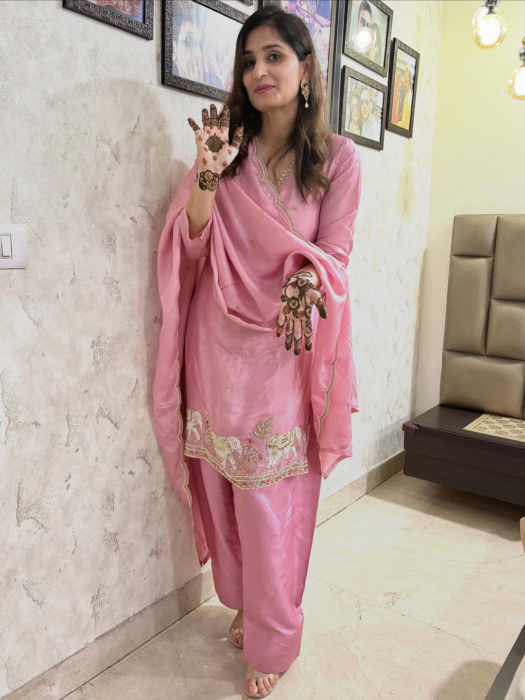 This post was published on 09th October, 2025 by Nakashi on her Instagram handle "@nakashi_chopra (Nakashisonichopra)". Nakashi has total 73.5K followers on Instagram and has a total of 809 post.This post has received 117 Likes which are lower than the average likes that Nakashi gets. Nakashi receives an average engagement rate of 2.35% per post on Instagram. This post has received 56 comments which are greater than the average comments that Nakashi gets. Overall the engagement rate for this post was lower than the average for the profile. #karwachauth #prekarwaready #karwamehendi #pyaarkadin has been used frequently in this Post.