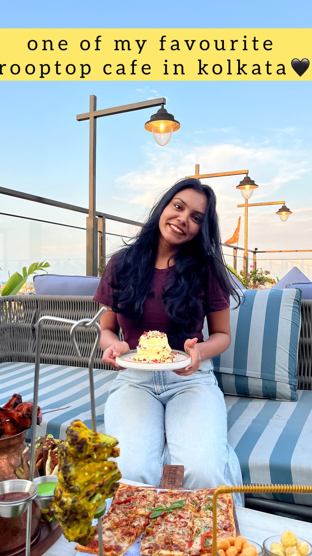 - chicken download pizza - rosemary squid popcorn Grill fish with lemon butter sauce - Lebanese platter - Butter chicken bao Chilly garlic noodles Rasmalai cake White chocolate matcha mousse Space chamber chocolate mousse 📍:9th floor,173/4/5, VIP Rd, Ramkrishna Pally, Kaikhali, Kolkata, WestBengal 700052.