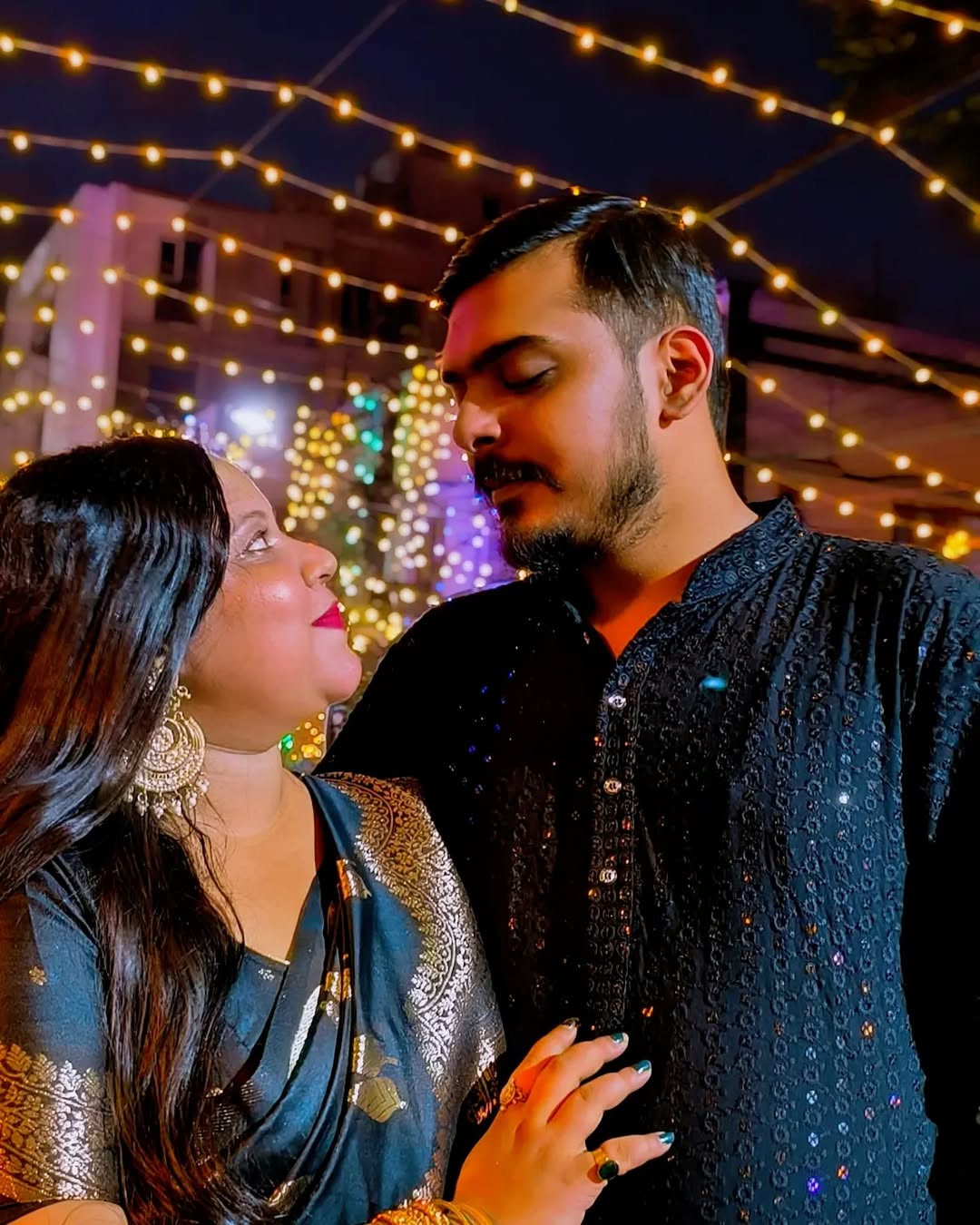 প্রেম নাকি পাগলামি বলতে পারবোনা 🙈🧿❤️ . . #kolkatadiaries #durgapuja #ashtami #couple #couplephotography #blacklove #love #twinning #twinning👯 #matchingoutfits #couplelove #viral #trending #ethnic #ethnicwear #sareepunjabi #blacksaree #blackkurta #desi #bestfriends #picoftheday #sreeparna87