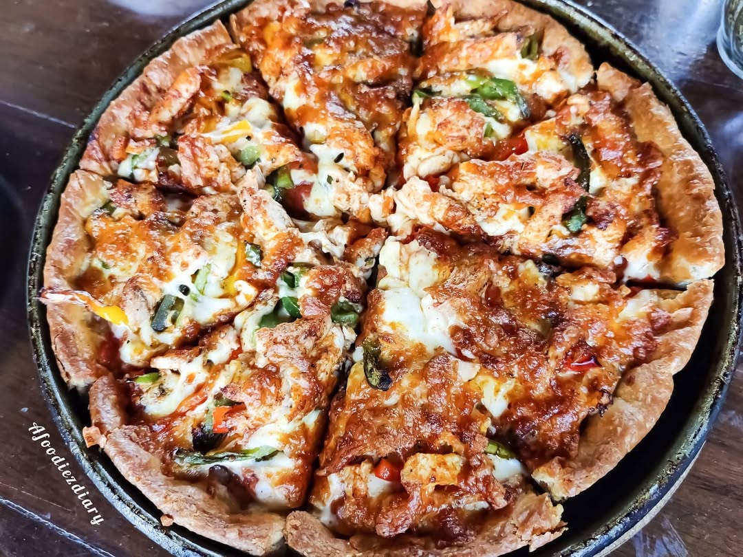 And now....🌚 The most famous dish at UNOs - *DEEP DISH PIZZA* . 🍕🍕🍕🍕🍕🍕🍕🍕 🍕Deep dish Pizza, was first developed at Chicago, in 1943. Chicago-style pizza is a pizza prepared according to several different styles. The most famous is the deep-dish pizza🍕. The pan in which it is baked gives the pizza its characteristically high edge which provides ample space for large amounts of cheese 🧀 and a chunky tomato 🍅 sauce. 🍕 🍽️🍽️ | | Dish 3 | | 🍽️🍽️ ||🍴Fajita Fire 🔥|| From the kitchen of @unokolkata 💲💲💲 Comes in two sizes and two prices - SMALL - @Rs. 409/ MEDIUM - @719. 💲💲💲 🍕It is a chicago-style pizza prepared in deep-dish style and as a stuffed pizza. It is stuffed with mexican grilled chicken, jalapenos,mixed peppers and red onions. 🍲 This pizza is stuffed with cheese, which makes it even more tastier. 🧀 If you are a fan of pizza with extra cheese then this should definitely be your take❤️. The dish comes garnished with capsicums, red onions, tomatoes and bell peppers.😁 While I was at UNOs, I ordered their MEDIUM size Fajita Fire which comes at a price of Rs 719 and serves in 8 pieces. 🍴 Serves 🍴 🙈It fills your tummy really well, as it is stuffed in the inside. So it must be enough for 3-4 persons. 🤓 What worked? 🤔 ✅ The concept, the stuffing and the cheese 🧀. What didn't work? 🧐 ❌ Everything was pretty fine, but I think the price to be paid wasn't worth it. It was too costly. Rating 🤓: 4 🌟/5 🌟. . . For more such reviews and to know the best places to dine-in, while in town, keep following, @afoodiezdiary . 🌚 . . ✉️ DM/or drop a mail for collaboration☺️. . . Use #afoodiezdiary to get featured. . . #pizzeria #UNO #dinein #cityofjoy #foodiesforlife😋 #afoodiezdiary #pizzalover #teaseroutnow #foodforlife #kolkatatimes #kolkatafoodbloggers #whattodoinkolkata