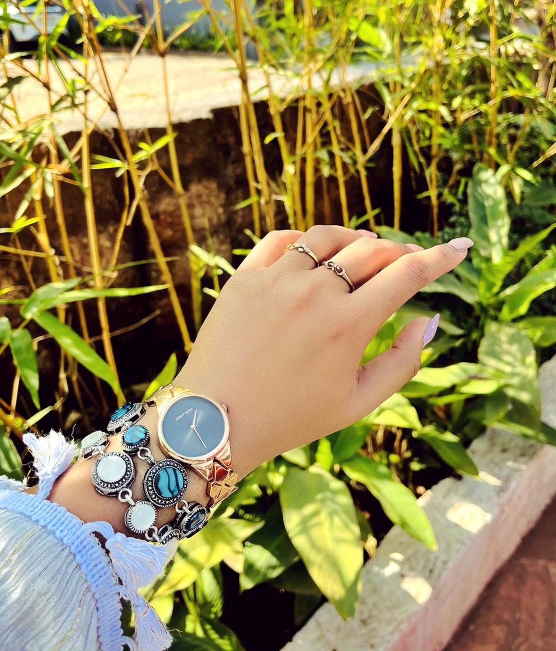 Exploring Goa's markets, I've only hitched a ride on these charming dual stone bracelets. 🌼 Embracing the boho vibes with this delightful stack – a must in Palolem Market, South Goa, and Saturday Night Bazaar, North Goa. Bargain skill: essential! 💫 Watch : @jokerandwitch Rings : @caratlane #GoaTreasures #BohoFinds #MarketAdventures #ananyamitra #kolkatafashionblogger #travelgram #jewelrylover #braceletstacks #aestheticedits #flatlaystyle #instagood