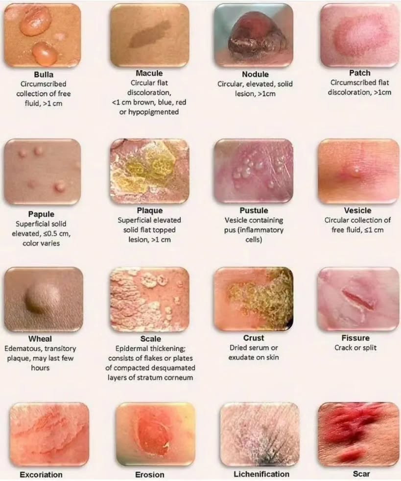 Different skin lesions . Follow us for more @medicohubworldwide Tag your friends #skin #anatomy #fmge #usmle #nursing #nurse #physiotherapists #aiims #doctor #doctors #medical #medicine #dermatology #skin