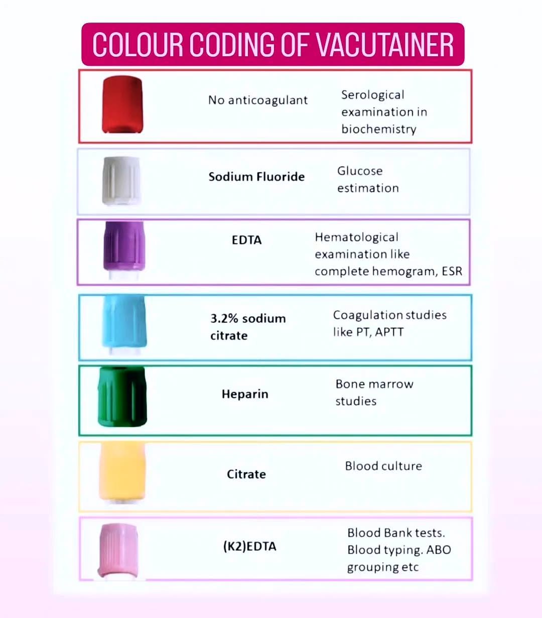 Colour Coding of vacutainer !! Follow us for more @medicohubworldwide Tag your friends #medical #medstudents #medschool #usmle #usmlestep1 #aiims #fmge #nursing #nurselife #physiotherapy #doctor #doctorlife