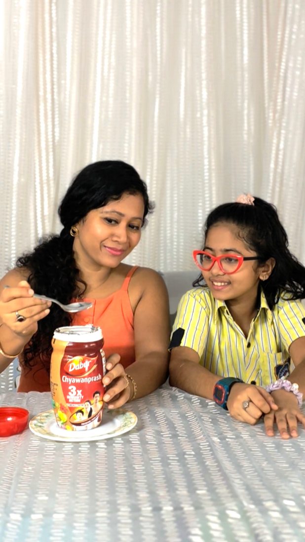 Rainy days call for extra care 🌧️💛 My little Mohi’s daily routine isn’t complete without 2 spoonfuls of Dabur Chyawanprash 🌿 It completes her monsoon immunity routine, helps boost her immunity, and protects her from seasonal illness 🤧✨ @daburchyawanprashindia #AyurvedicCare #StrongImmunity #bimarifreebarsaat #AndarSeStrong #collaboration