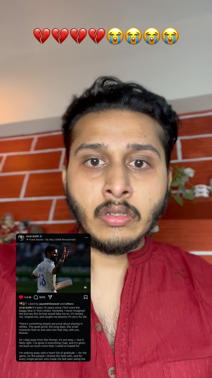 This post was published on 12th May, 2025 by Siddhanth on his Instagram handle "@siddhanth_vardhan (Siddhanth vardhan)". Siddhanth has total 46.2K followers on Instagram and has a total of 581 post.This post has received 13.9K Likes which are lower than the average likes that Siddhanth gets. Siddhanth receives an average engagement rate of 50.65% per post on Instagram. This post has received 144 comments which are greater than the average comments that Siddhanth gets. Overall the engagement rate for this post was lower than the average for the profile. #kohli #viratkohlifans #roko #testcricket #viratkohliretirement #testretirement #viratpaglu #kohliretirement has been used frequently in this Post.