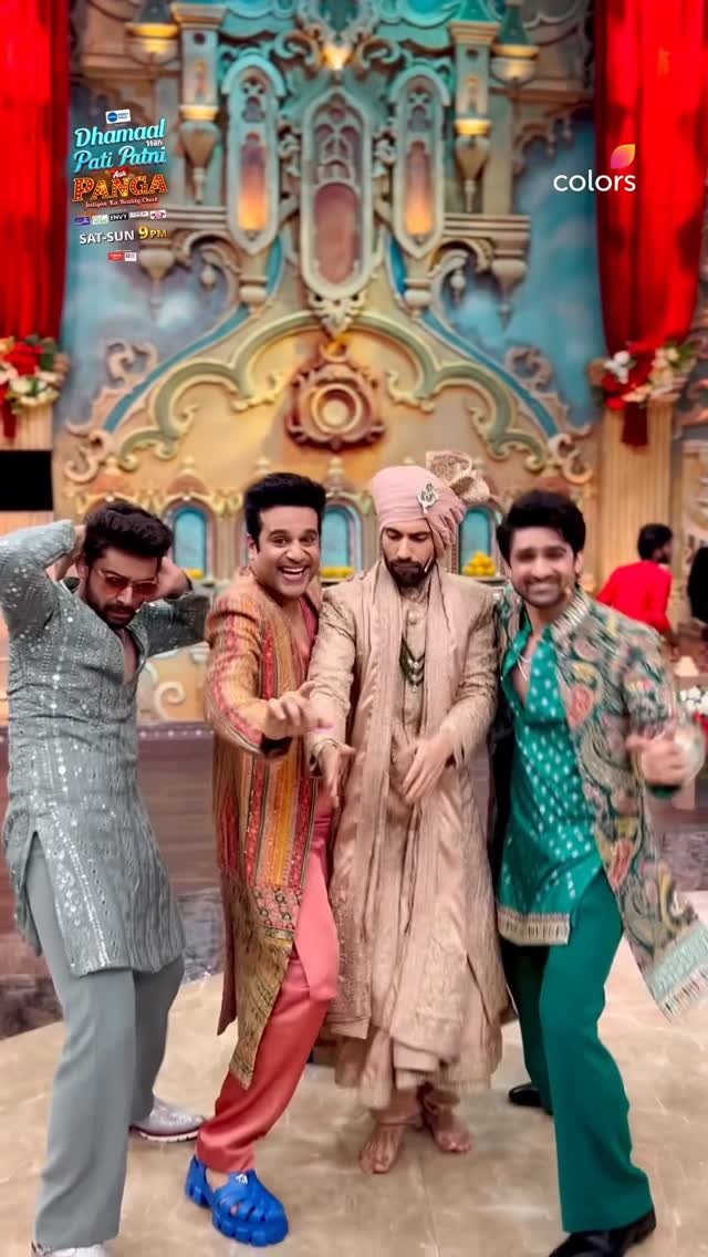 Dulha aur uske yaar hai taiyaar, kya aap bhi hai #MilKa ki shaadi ke liye bekaraar? 😍 Dekhiye #DhamaalWithPatiPatniAurPanga - Jodiyon Ka Reality Check, Mein Avika aur Milind Ka Shubh Vivaah Iss Sat-Sun raat 9 baje, #Colors aur @jiohotstar par. @avikagor @milindchandwani @patipatnipangacolors @krushna30 @samarthjurel @aebyborntoshine