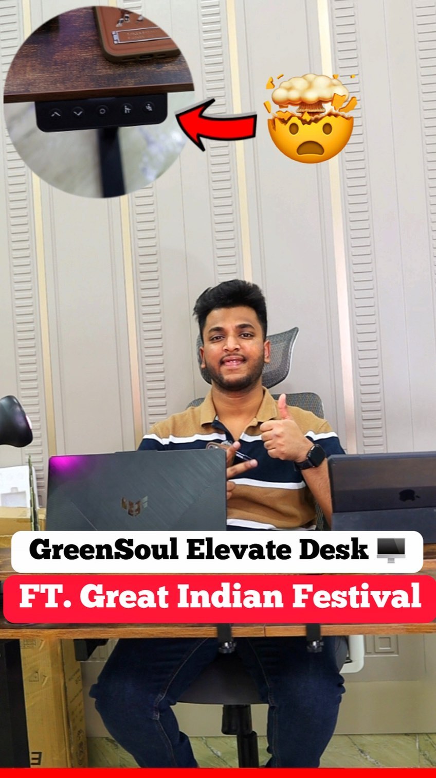 GreenSoul Elevate Desk Review 🖥️ FT. GIF 🔥 Upgrade to comfortable WFH furniture that keeps you productive, and ready for whatever the day brings. MINIMUM 50% OFF this Amazon Great Indian Festival. Link in bio, shop now & save big! Products featured in this video ❤️ ➡️ Greensoul Elevate Desk Key Features Of This Product ⬇️ ✨ Base Material - Engineered Wood ✨ Adjustable Height (Minimum 73 cm to 118 cm) ✨ 2 Electronic Adjustable Presets ✨ 60Kg Max Weight Capacity ✨ 3 Years Warranty And 1 Year Motor Warranty . . . #amazongreatindianfestival #furniture #wfh #gif #linkinbio #greensoul #desk #home #review #reelsgram #diwalioffer #homemakeover #computertable #amazonhome #greatindianfestival #deals #buynow #feed #explorepage #share #recommendations