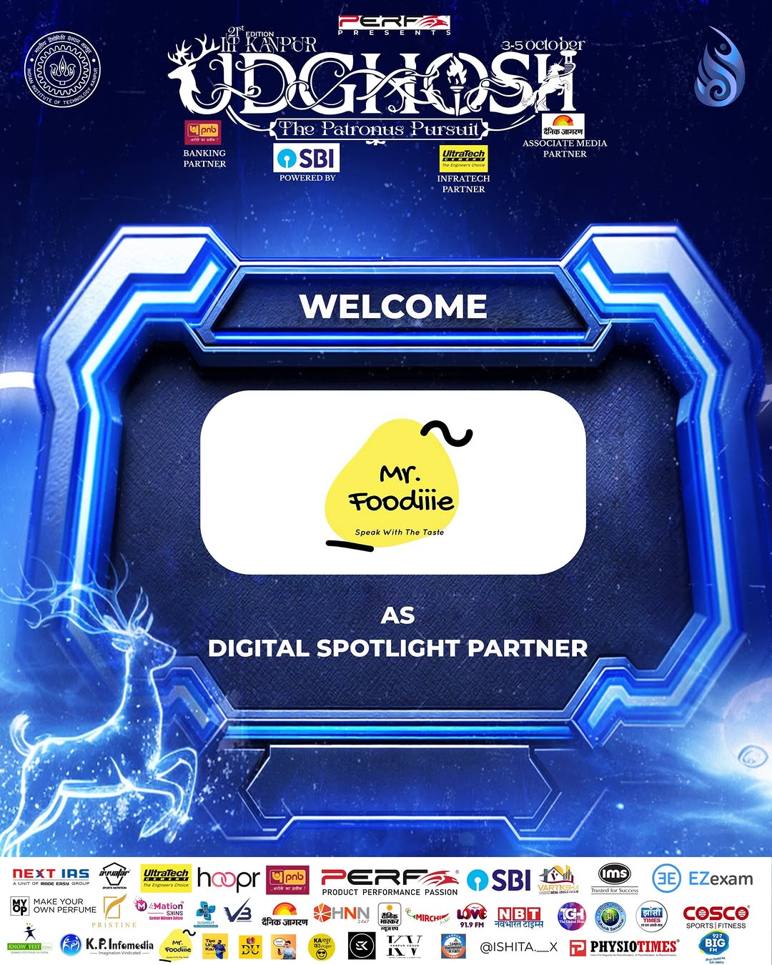 We are thrilled to welcome Mr. Foodiiie as the Digital Spotlight Partner for Udghosh 2025! Get ready for mouth-watering content, engaging campaigns, and a digital journey that will keep you craving for more. #udghosh2025 #DigitalSpotlightPartner #mrfoodiiie #iitkanpur #foodiesunite #festivalvibes #digitalcollab