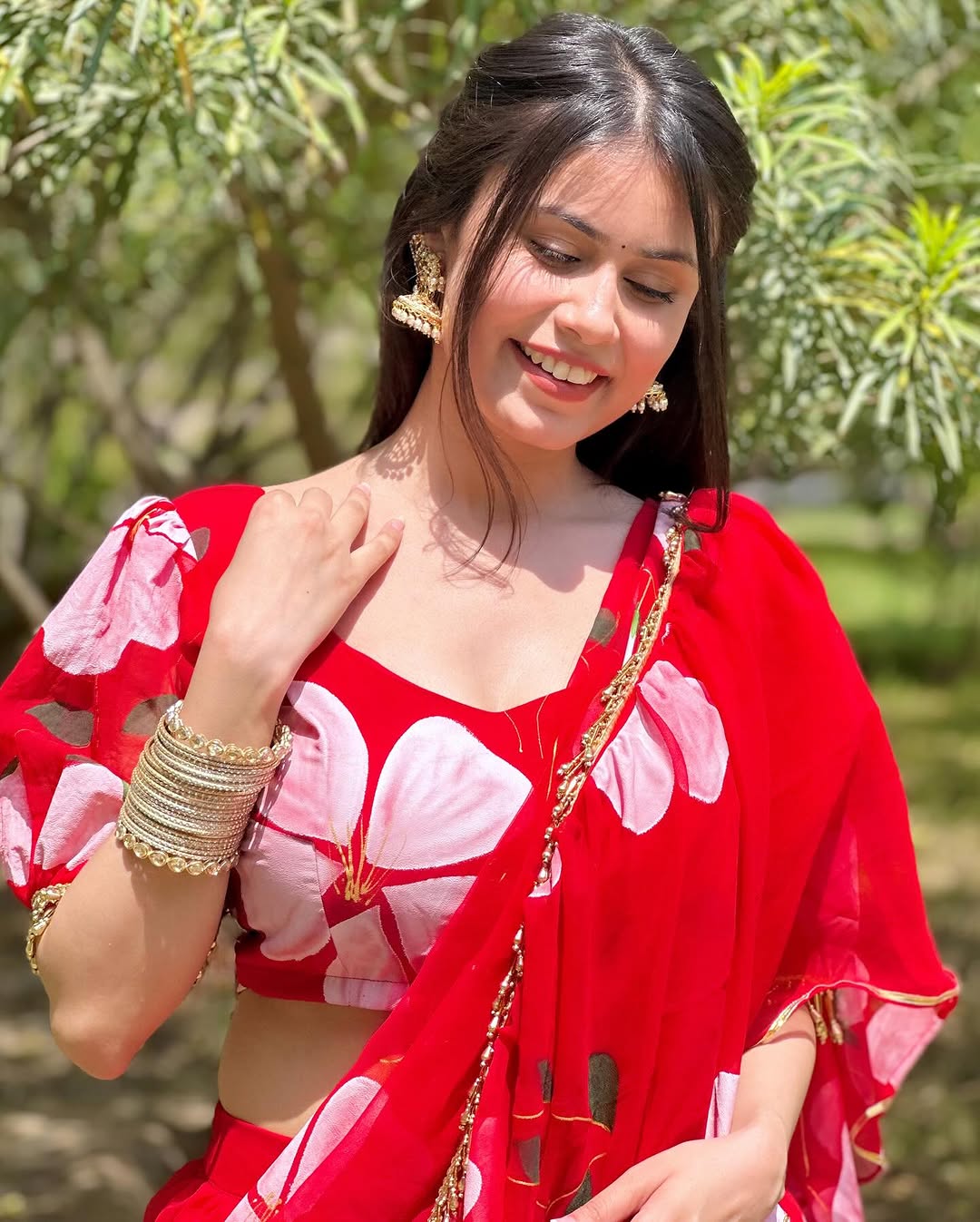 I might have 99 problems right now, but giving up on looking good isn’t one of them 🫢 Love this saree by @thetraditionallabel ♥️ Earrings @the_huess [Grwm, wedding guest outfit, saree look, Indian fashion, effortless glam, red saree, summer wedding look, desi glam, confident in red, not giving up ever]