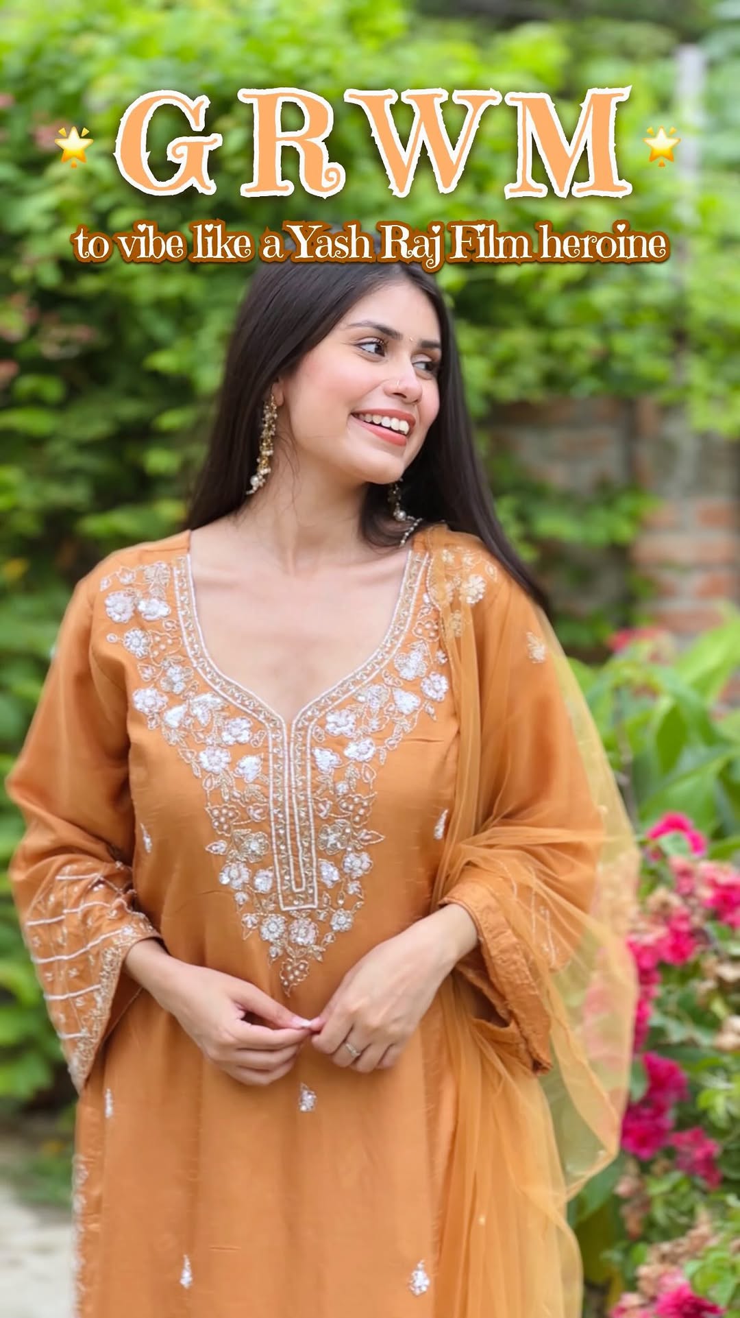 Never thought I’d love this colour on me 🤎 But there’s something about earthy tones, they make you feel effortlessly graceful ✨ Outfit : @theklothingyard 🌸 Comments for links 🌸 [#grwm, #elegantstyle, #earthytoneedit, #indiansuitstyle, #minimalindianwear, #desigirlvibes]