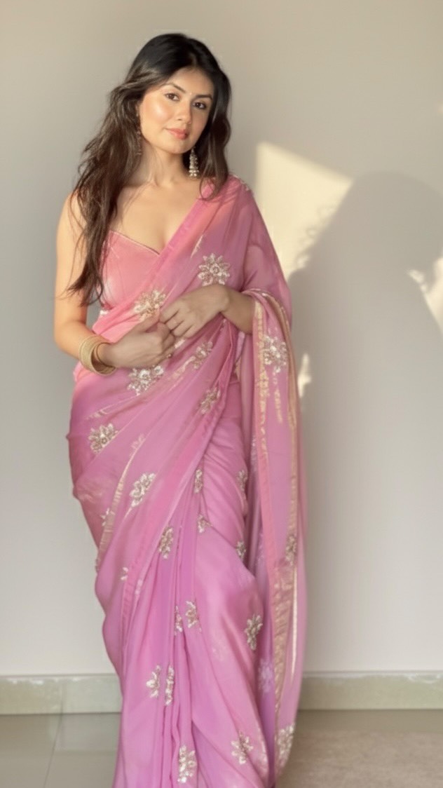 This saree is giving millennium shimmer vibes 🥹💕 Saree : @anuki.in Earrings : @arnisha.creations Heels : @myntra Bangles : Lajpat Nagar Market Comment “LINK” to receive all links 💕 #GRWM #SareeVibes #MillenniumGlitter #SoftGlowLook #FestiveMood #IndianFashion #InstaFashion #pastelsaree