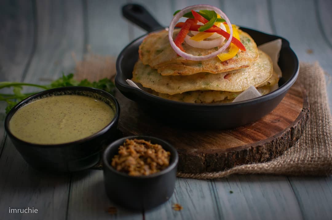In Frame: Rice Veggie Pancakes (Cheela)...... Very common in Indian kitchen... And favourite breakfast of kids. Here I used red and yellow Bell pepper, onion,tomato, capsicum. Also you can add any type of your favourite vegetables.... DM for detail recipe.... . . . Follow @imruchie Follow @imruchie . . . . #chilla #pancakes #veganfood #vegetarian #vegetables #vegetablepancake #ricecakes #rice #coconut #chutney #food #foodbloggers #foodshare #foodforfoodies #foodshare #pinterest #ndtvfood #photo #photographer #foodphotos #foodbeast #foodstyling #foodinspiration #pancake #pancakeart #foodlover #foodmania