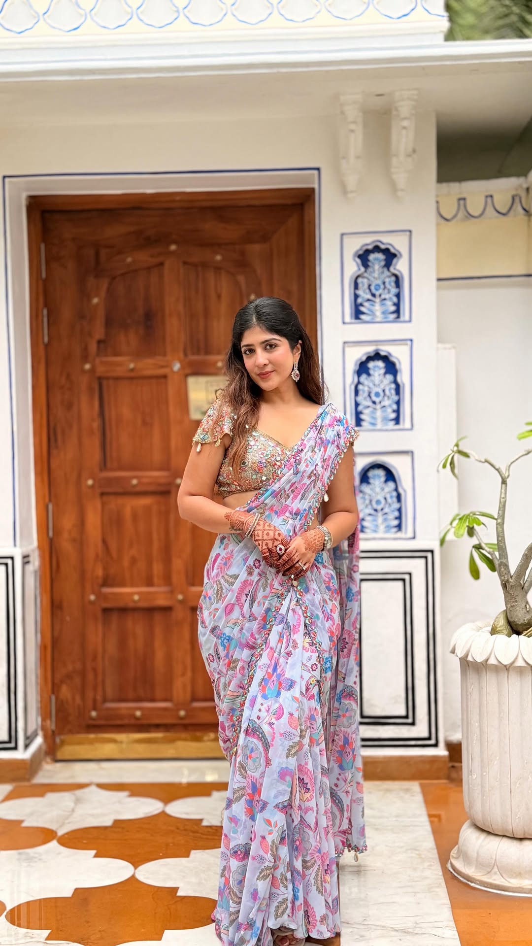 Easy, effortless and just perfect for a destination wedding!! Outfit @bymashofficial Glam @aashi.notnani.makeovers Venue @theleelapalace_jaipur (Ootd, festive wear, wedding outfit, haldi look, glam, destination wedding, Indian elegance, timeless look)