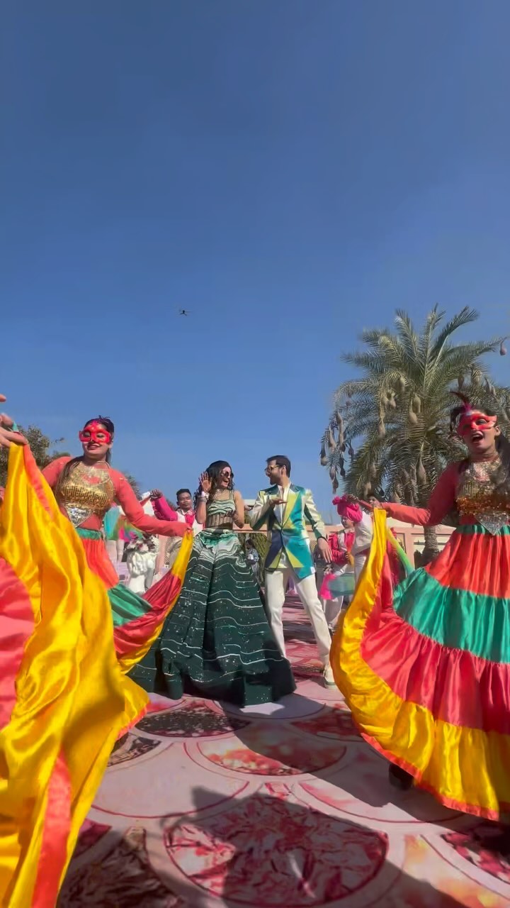 FIESTA AMOR 💗 Event planner : @royalrajasthanwedding MUAH : @vaibhi.kumawat @khushi_hairstylist_ DJ: @dinobanjara Capture: @h_dayma Choreography: @alpesh.bhatt #swinigothervish #carnival #jaipur #wedding #destinationwedding #weddingsutra
