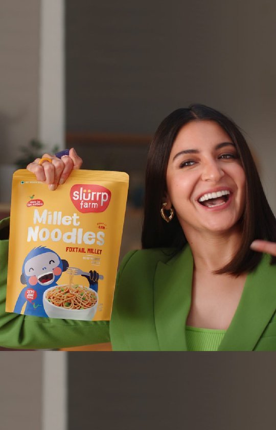 One thing my children just LOVE is 🍜 And even though they want noodles every other day, I can't say YES. They're fried and full of maida - totally unhealthy. This video from @slurrpfarm shows this so well! Many of these ""healthy"" noodle versions are actually not healthy at all 😨 But when noodles are NOT FRIED and made with millets, it's just so easy to say YES to our kids every day! #YesKaTimeAaGaya You can grab their healthy goodies on www.slurrpfarm.com, Amazon, Flipkart, BigBasket and FirstCry. #AnushkaSaysYesToSlurrpFarm #SlurrpFarm #MadeBy2Mothers #NoJunk #anushkasharma #madeinindia #sustainability #love #millets #nomaida