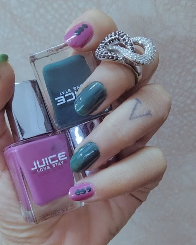 Smiling with #nails 😉😘 💅 #simplenailart with @juicecosmetics Shades using 353 Sacramento, 95 Vintage Lantern, S28 Silverish Gold ❤️💅 #pinknails #greennails #goldennails #juicenails #juicecosmetics #makesyoushine #ahmedabadnails #nailblog #nailblogger #instanails #longnails #likes #photooftheday #ignails #nailsofinstagram #mondaynails #morning #shinynails #shimmerandshine
