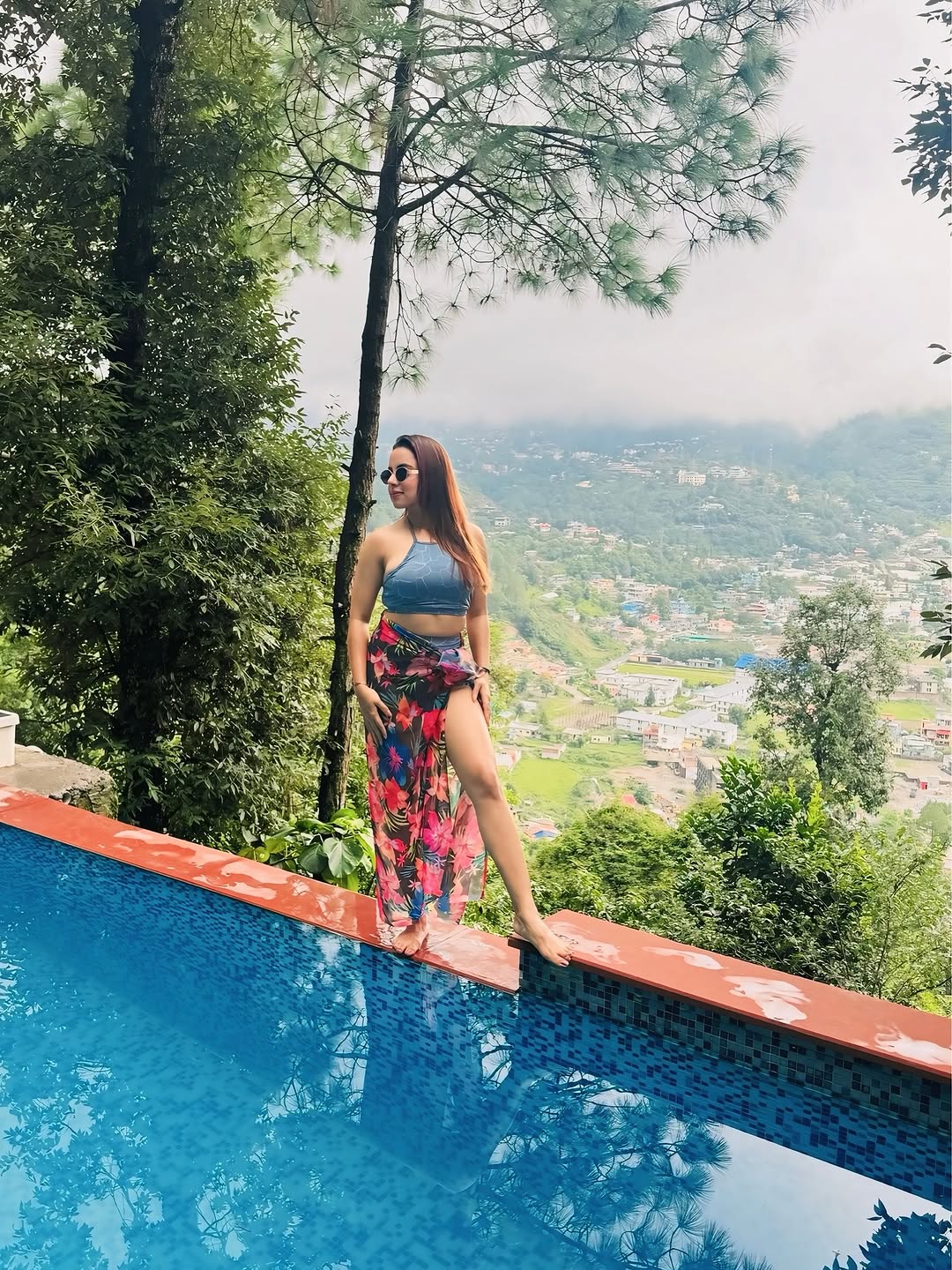 Balancing on the edge of calm and chaos... 🌊✨ #InfinityPool #PoolsideVibes #SkyAndWater #EdgeOfInfinity #ViewsForDays #OceanBlues #DreamyViews #luxuryescape #fernbhimtal