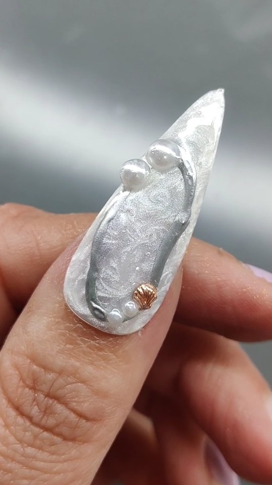 My nail art creativity train is on fire these days. So many ideas to try, new designs to explore. I am loving it! So I made a pearl inspired nail art for the beach. 🏖️🏖️🐚🐚🦪🦪🦪 #summernails #pearlnails #beachnails #hawaiinnails #summernails2025