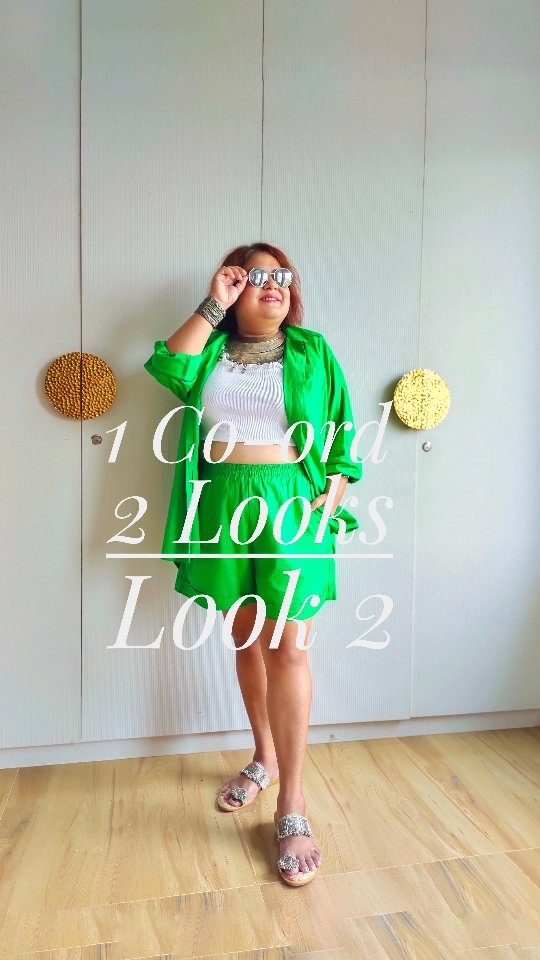 1 Co-ord 2 looks Look 2 #fashionblogger #fashion #styling #stylingtips #coord #green #lookbook #banglore ( Fashion fashion blogger Bangalore fashion blogger influencer shoes heels coord sunglasses women black pink colour green dress style stylish styling tips styling hacks fashion hacks lookbook)