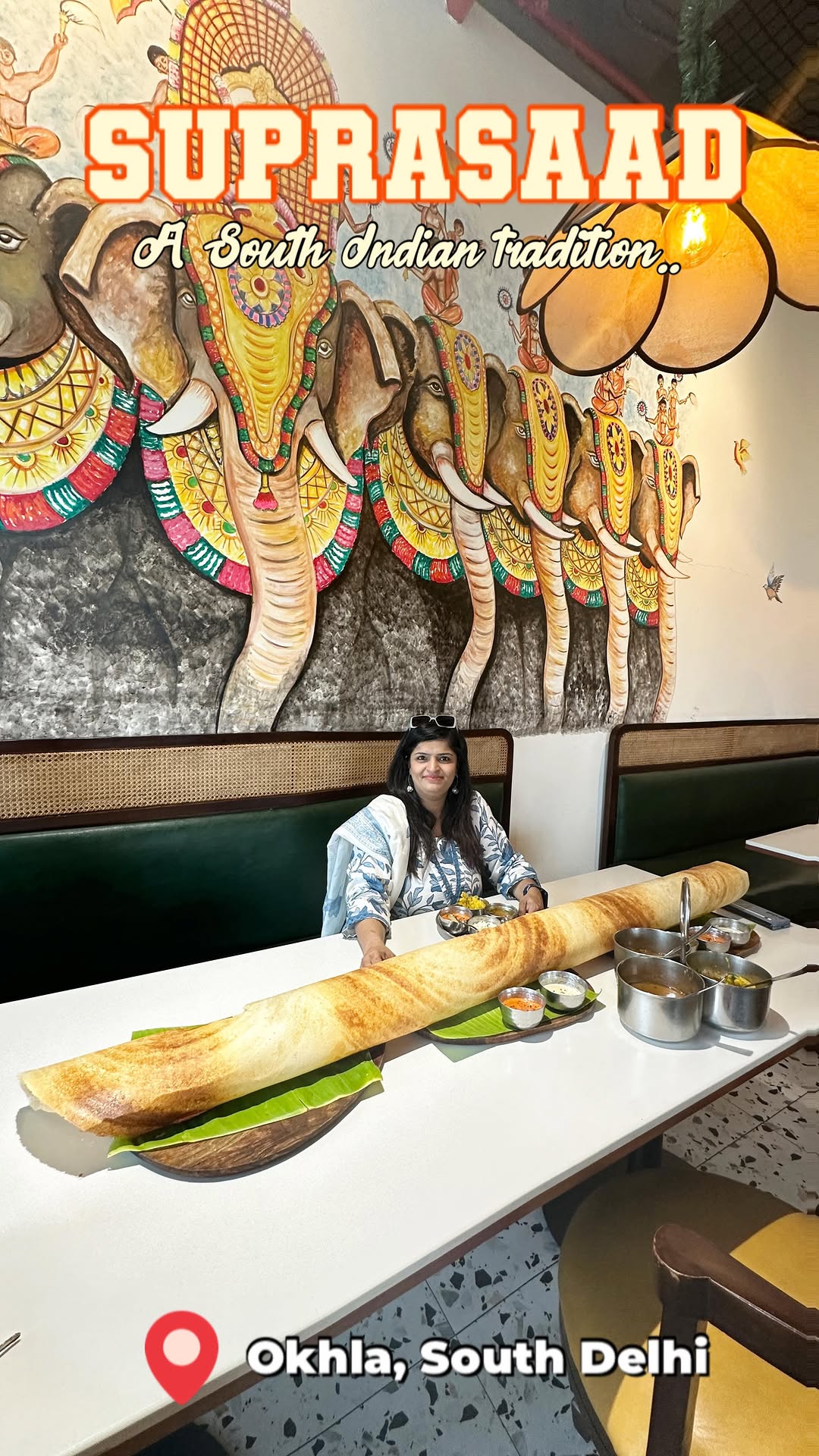 Discover culinary delights in the heart of Okhla, Delhi. Yes, am talking about Suprasaad, where South Indian flavors come alive.” Start your journey with soul-warming aromatic Rasam, bursting with authentic flavors.” Quench your thirst with Rose Lassi, infused with floral notes, or try refreshing Kokum Mojito. Delight your palate with crispy Palak Patta Chaat, flavorful Banana Bhajji, and irresistible Southy Sticks.” Feast on their signature Suprasaad Idli Platter a harmony of flavours or indulge in iconic 4-foot Family Dosa, a feast for all.” Finish on a sweet note with our Royal Rose Kulfi, a regal treat, or decadent Pineapple Halwa, bursting with tropical flavors.” You must experience the true taste of South India at Suprasaad. Where every bite is a celebration of flavors.” “Suprasaad - Taste the Tradition.” #southdelhi #southie #masaladosa #bananabhajji #palakpattachaat #idliplatter #southdelhicafes #southdelhirestaurants #delhiblogger #viralreels #viralreel