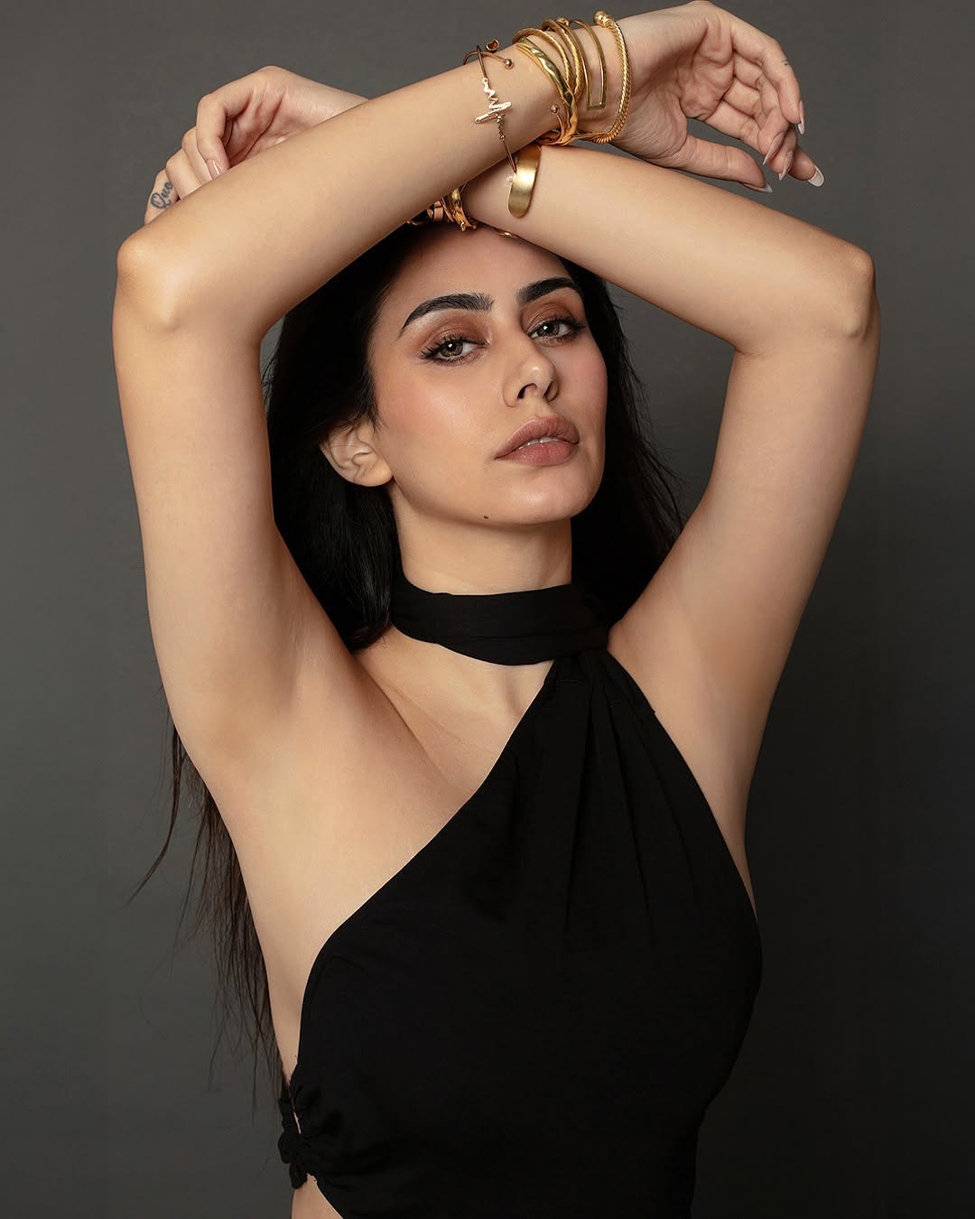 Warina @warinahussain sparkles in a chic black dress, captured beautifully by A. Rrajani. #warinahussain #photoshoot