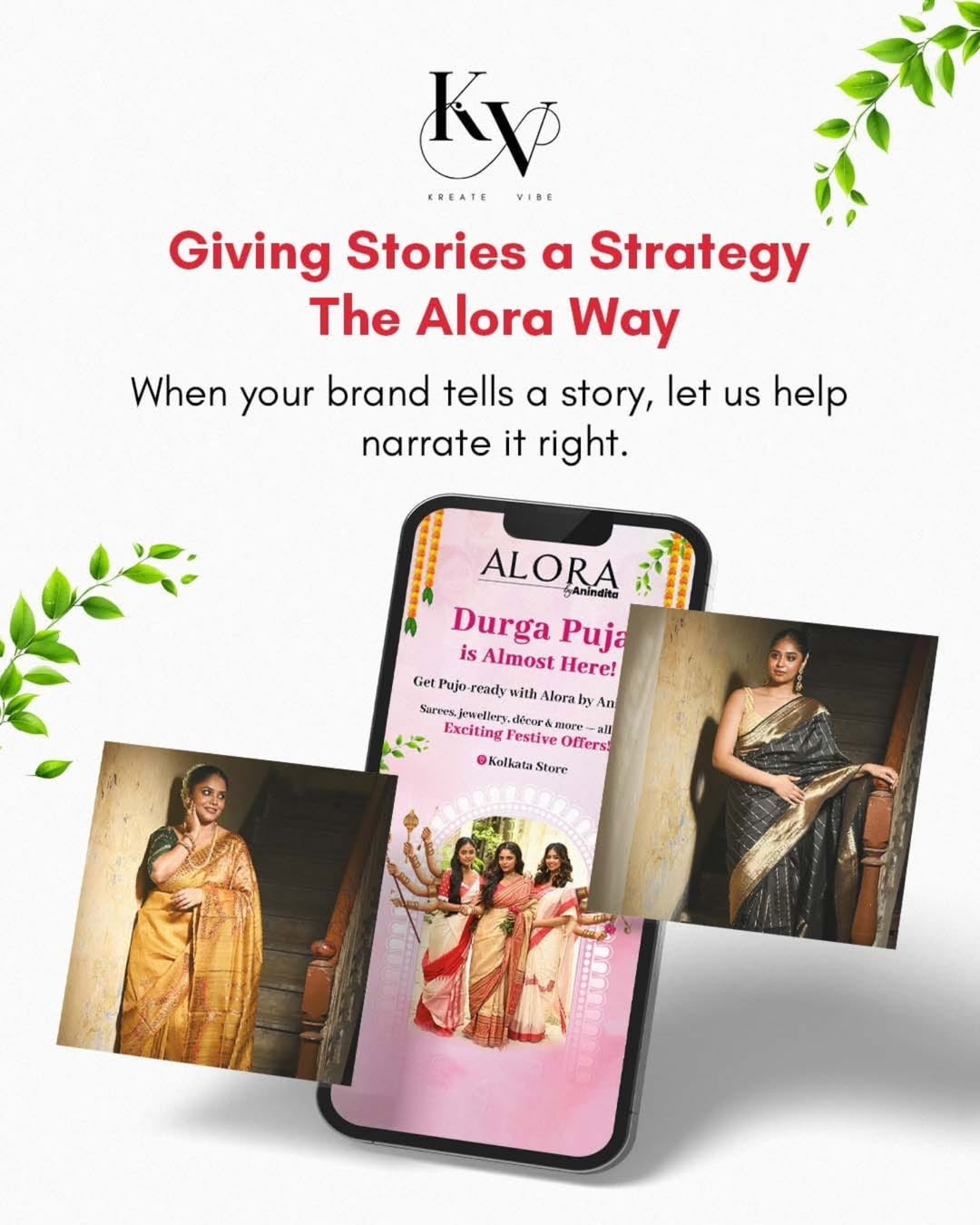At Kreate Vibe, we don’t just post. We plan. Our collaboration with Alora by Anindita is all about bringing culture to the digital stage—with a balance of modern content strategy and traditional aesthetics. We’re managing it all: → Social media curation → Campaign planning & execution → Design direction → Storytelling across posts, stories & creatives Want your brand to be seen, felt, and remembered? Let’s work together. kreatevibe2023@gmail.com +91 9319014806 | +91 98361 31065 #KreateVibe #AloraByAnindita #SocialMediaStrategy #DesignStudioIndia #CulturalBrands #KolkataCreatives #VisualStorytelling