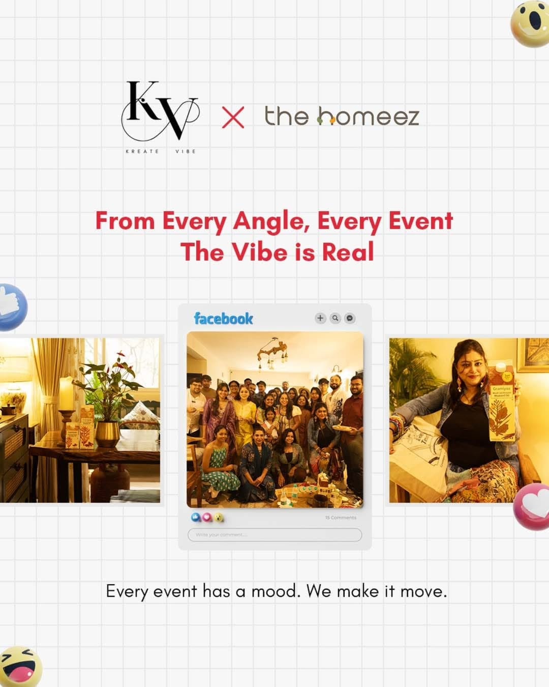 From fresh kitchens to earthy setups, bustling markets to curated tastings—Homeez brings the community, and Kreate Vibe brings it to life. We’ve been capturing candid chaos, cozy moments, brand love and audience reactions—frame by frame, reel by reel. ID Fresh Sprig Gramiyaa …and the collaborations continue! Have an event that deserves to be remembered visually? Let us turn it into digital gold. +91 9319014806 | +91 98361 31065 kreatevibe2023@gmail.com #KreateVibe #HomeezEvents #EventPhotographyIndia #EventReels #CreativeEventAgency #FoodAndCommunity #FMCGEvents #ContentThatConnects