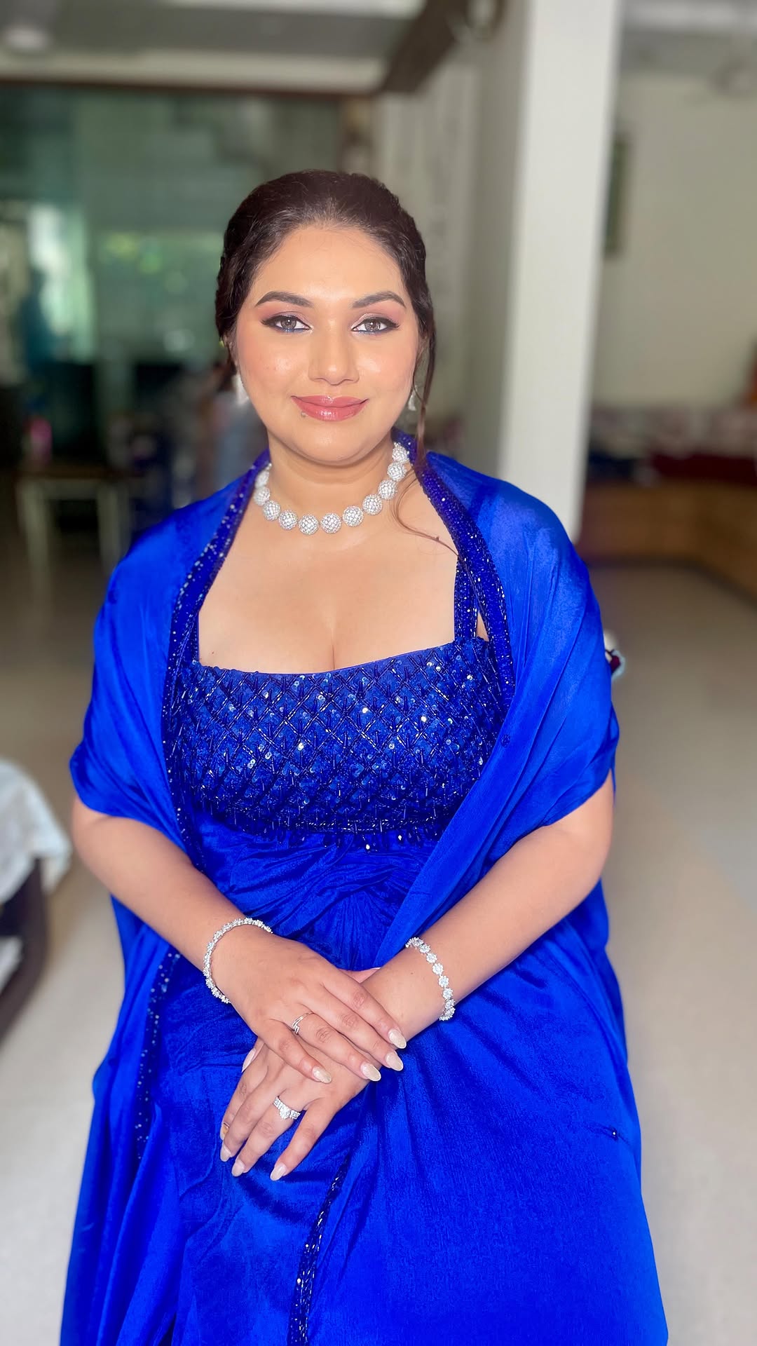 ~THE SHOW STOPPER ~ This stunning professional stylist conceptualised her A-game with an electric blue 💙outfit - tied up hair -dewy base - winged liner - and a whole lot of creativity She’s a dream client and an even more amazing person⭐️ Hair - @makeupbyaashvikhimasiya