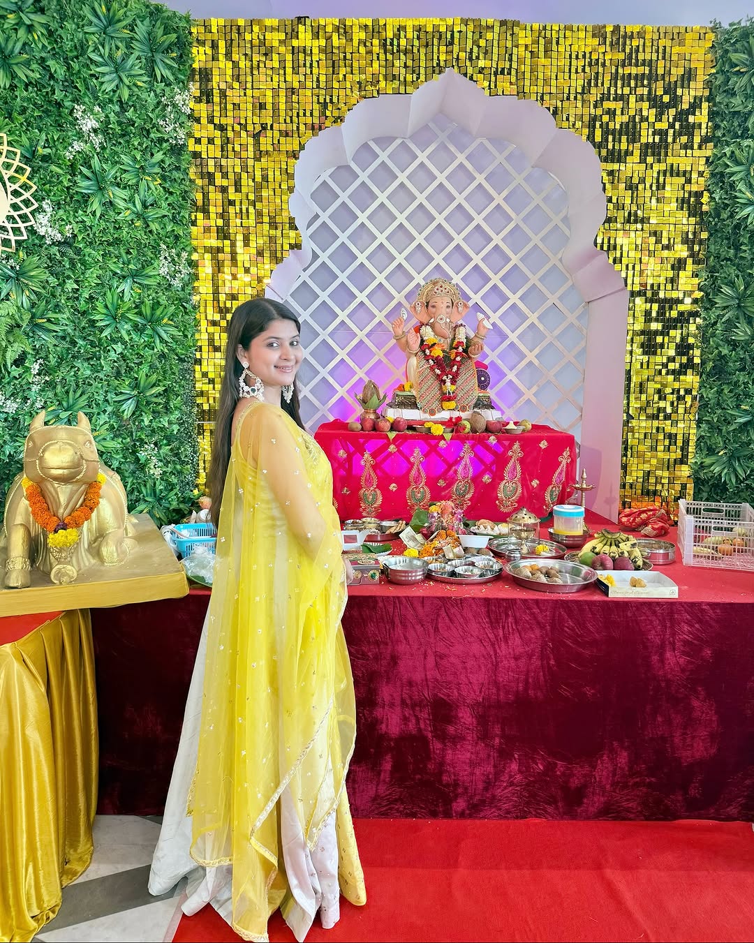 Ganpati Bappa is here ✨ Mere pyare Gannu Ji ❤️🙏🏻 With him, I have it all. Without Him, nothing. . . [ festival, festive , Ganesh Ji, Ganpati , Mumbai , ootd, Lalbaugcha Raja, reels , trending , siddhivinayak]
