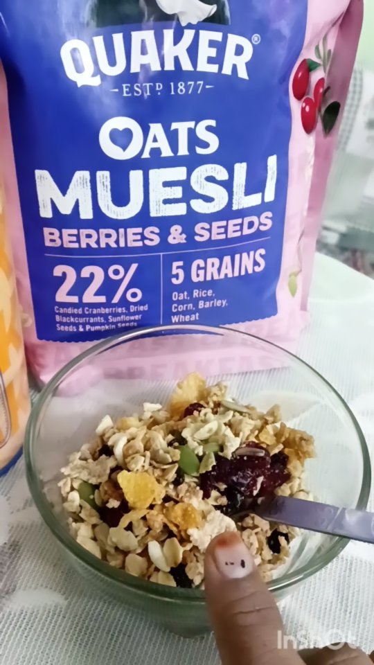 Crunchy, nutritious, delicious - that's my breakfast. The new Quaker Oats Muesli is packed with the goodness of oats, protein, fibre & nutritious energy. Not just that, I can make it in under a minute by just adding milk or curd. It's time for a breakfast that makes me want to never skip breakfast again! @quaker_india @ameliearya5 @gotochefofficial #quakeroatsmuesli #collab #FuelForTheRealFit