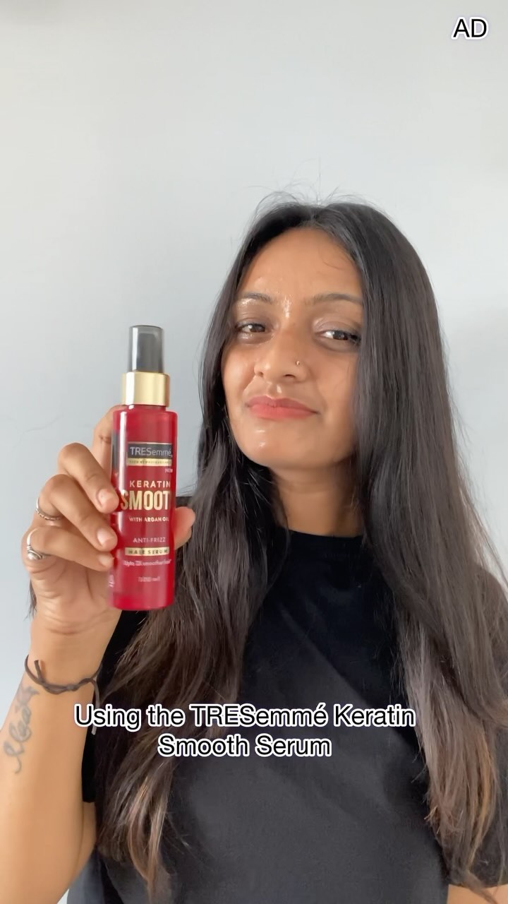 Elevate your style with the hottest glossy hair trend with @tresemmeindia Keratin Smooth Serum ✨ It leaves my hair 2x* smoother and controls frizz for up to 2 days*, while acting as the perfect primer before styling. Get your TRESemmè Keratin Smooth Serum today! Head on to the @tresemmeindia bio & shop now! #tresemme #tresemmelndia #tresemmekeratinsmoothserum #wavefrizzgoodbye #salonsmooth #hairstyling #healthyhair #ProfessionalHairCare #HaircareCommunity #HairCareRoutine #EverydayisGoodHairDay #HairSerum #Ad