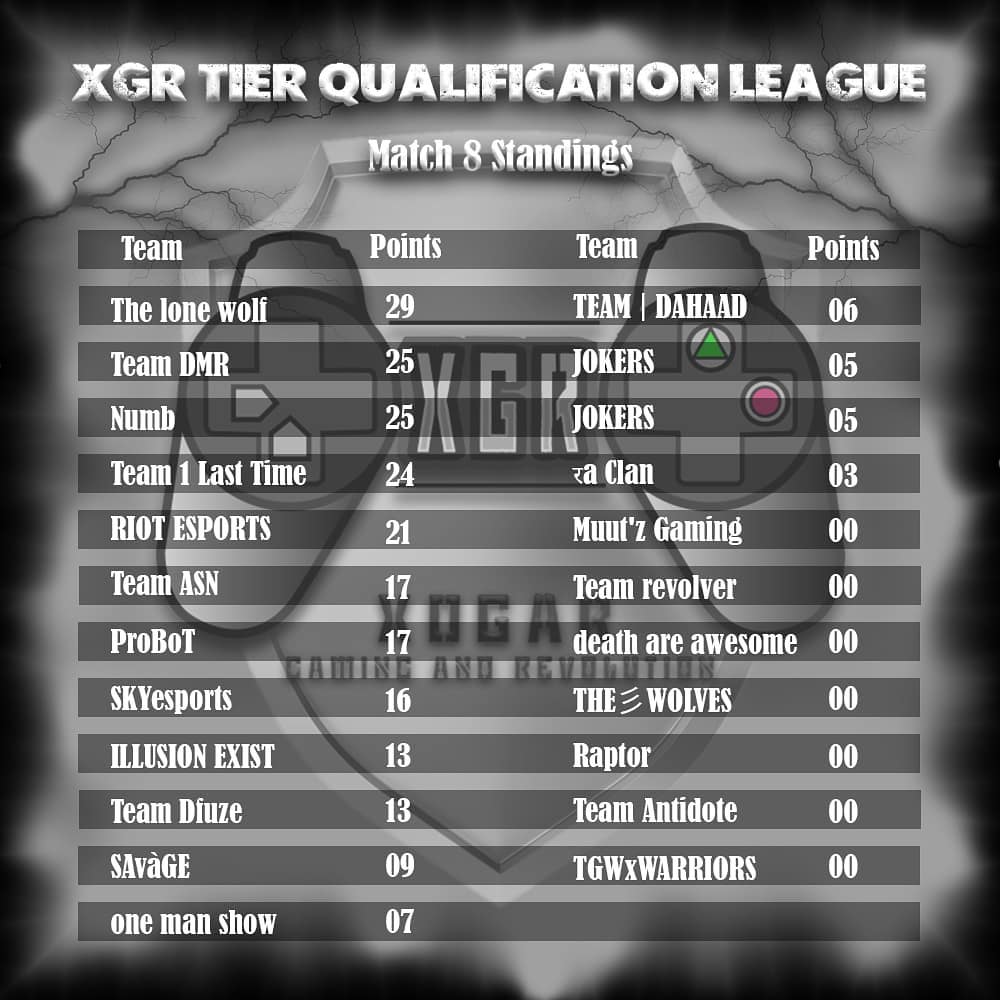 XoGAR Tier QUALIFICATION LEAGUE 🔥🔥 Match 8 Standings! Matches live on youtube, do check out! . . #pubgmobile #pubgm #pubgtournaments #pubgindia