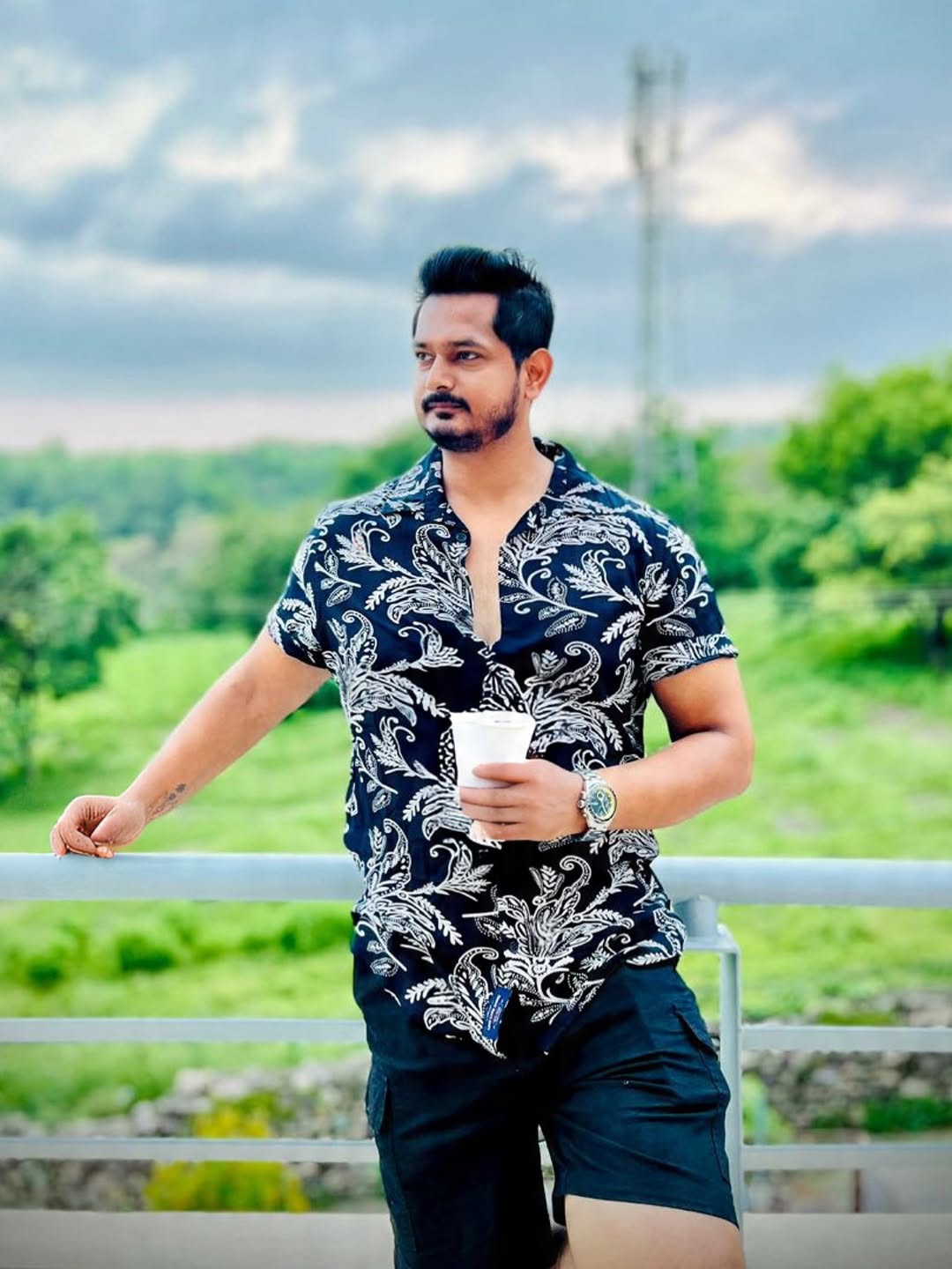 A vibe that doesn’t need loud—just good light, good coffee, and good mood . . . . #potd #peacefulplace #mensfashionindia #mountainvibes #travelinstyle #sunkissedmood #indianinfluencer #chillscene #travelinfluencer