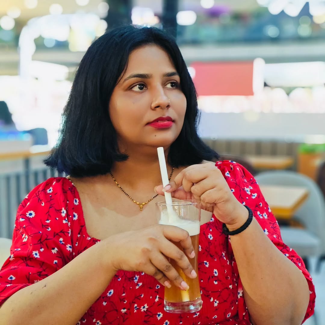 Sippin’ on moments, lost in my own little daydream. ✨ #PauseAndSip #RedDressVibes #CafeMood #SoftMoments #WeekendFeels #instapost #instagram #aani_ki_duniya