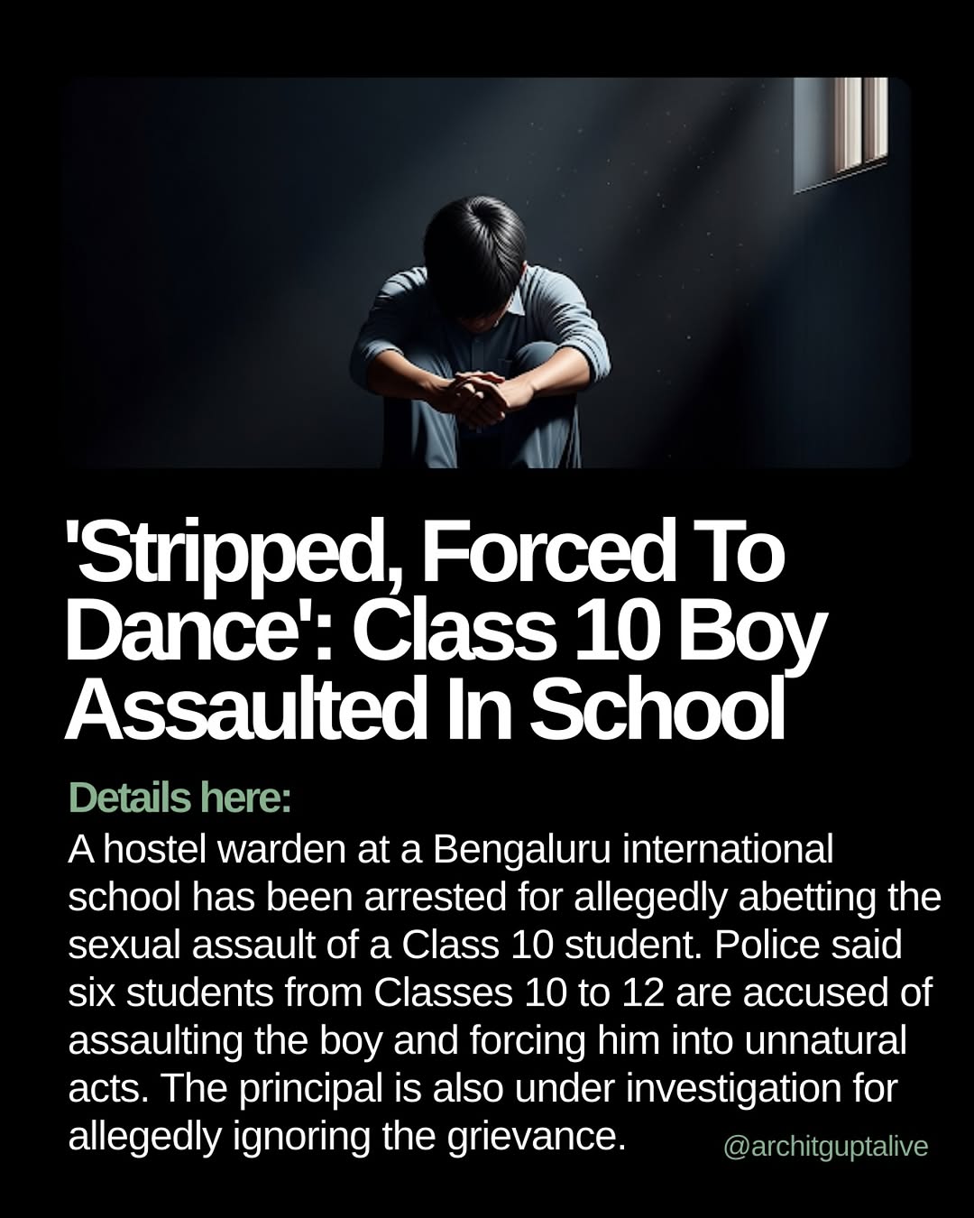 A hostel warden of a Bengaluru-based international school has been arrested for allegedly abetting the sexual assault of a Class 10 student. According to police, six students from Classes 10 to 12 have been accused of sexually assaulting the boy and forcing him to perform unnatural acts. The victim had reportedly complained earlier, but no action was taken by the school authorities. The principal is now under investigation for allegedly ignoring the student’s grievance. Police have registered a case and further investigation into the incident is underway. #Bengaluru #Bangalore #StudentAssault [Bengaluru school assault, Bengaluru hostel warden arrested, Bengaluru principal probe, Class 10 student assault, Bengaluru international school case, school sexual assault Bengaluru, Bengaluru police investigation, Karnataka student assault case]